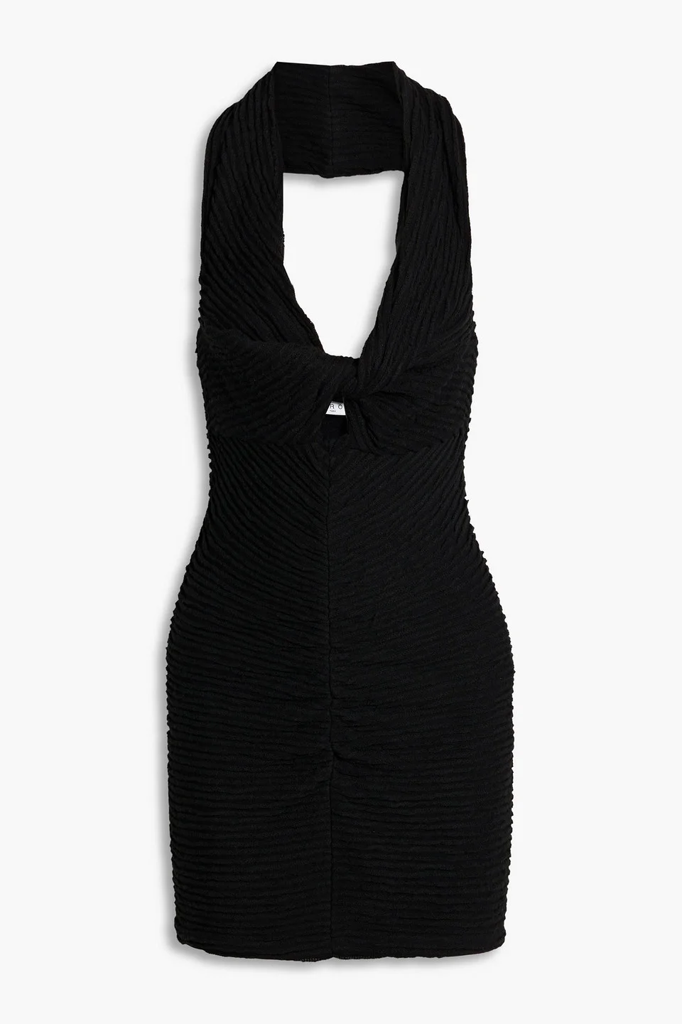 Oxanne twist-front ribbed-knit mini halterneck dress