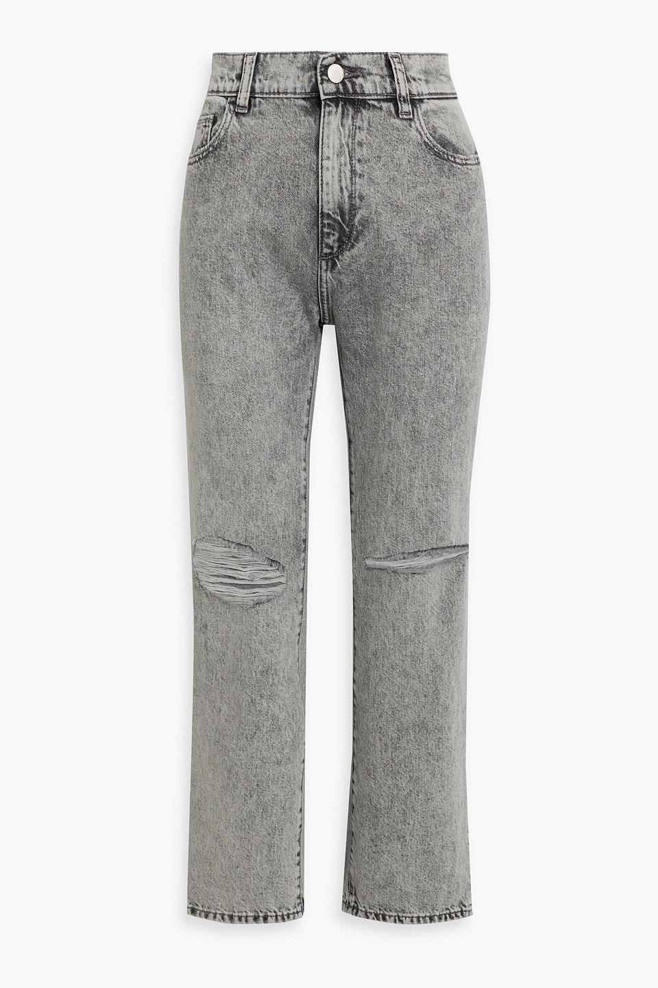 Straight-leg jeans acid-wash denim distressed belt loops high-rise cut multipockets button and concealed zip fastening at front mid-weight, non-stretchy fabric machine wash or dry clean imported 100% Cotton Product Code 1647597335300499