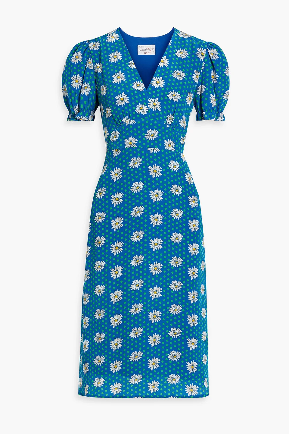 Dress polka-dot floral-print crepe de chine elasticated cuffs concealed zip fastening along side fully lined mid-weight, non-stretchy fabric dry clean imported 98% Viscose 2% Spandex Product Code 1647597340493360
