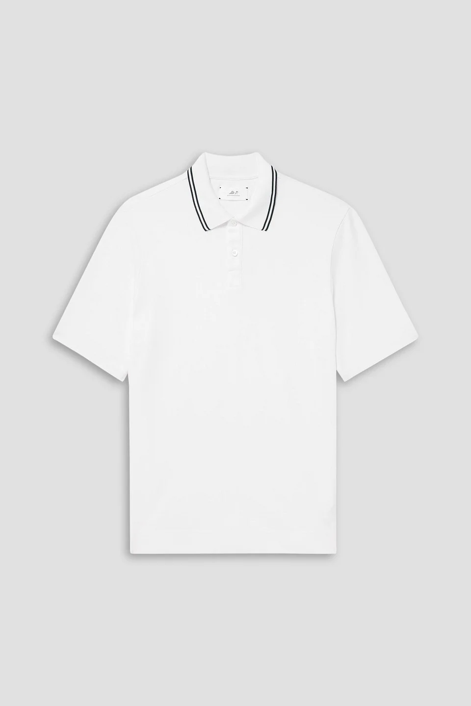Polo shirt pique striped trims short sleeves side slit hemline button fastenings along front lightweight, slightly stretchy fabric machine wash imported 62% Polyester 38% Cotton Product Code 1647597359932132
