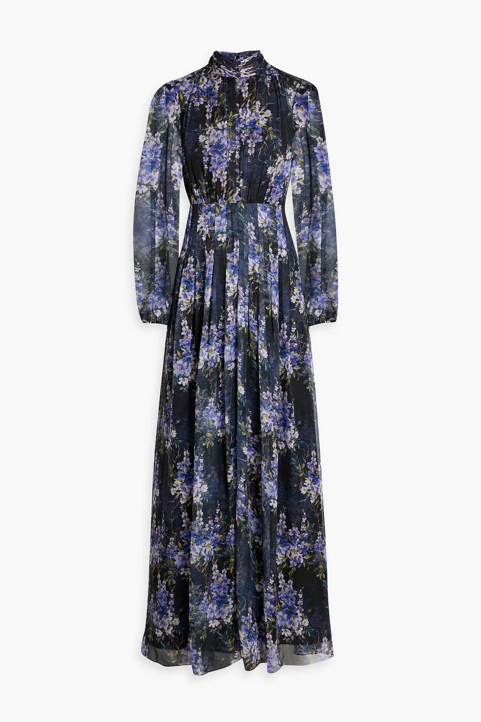 Pleated floral-print chiffon maxi dress