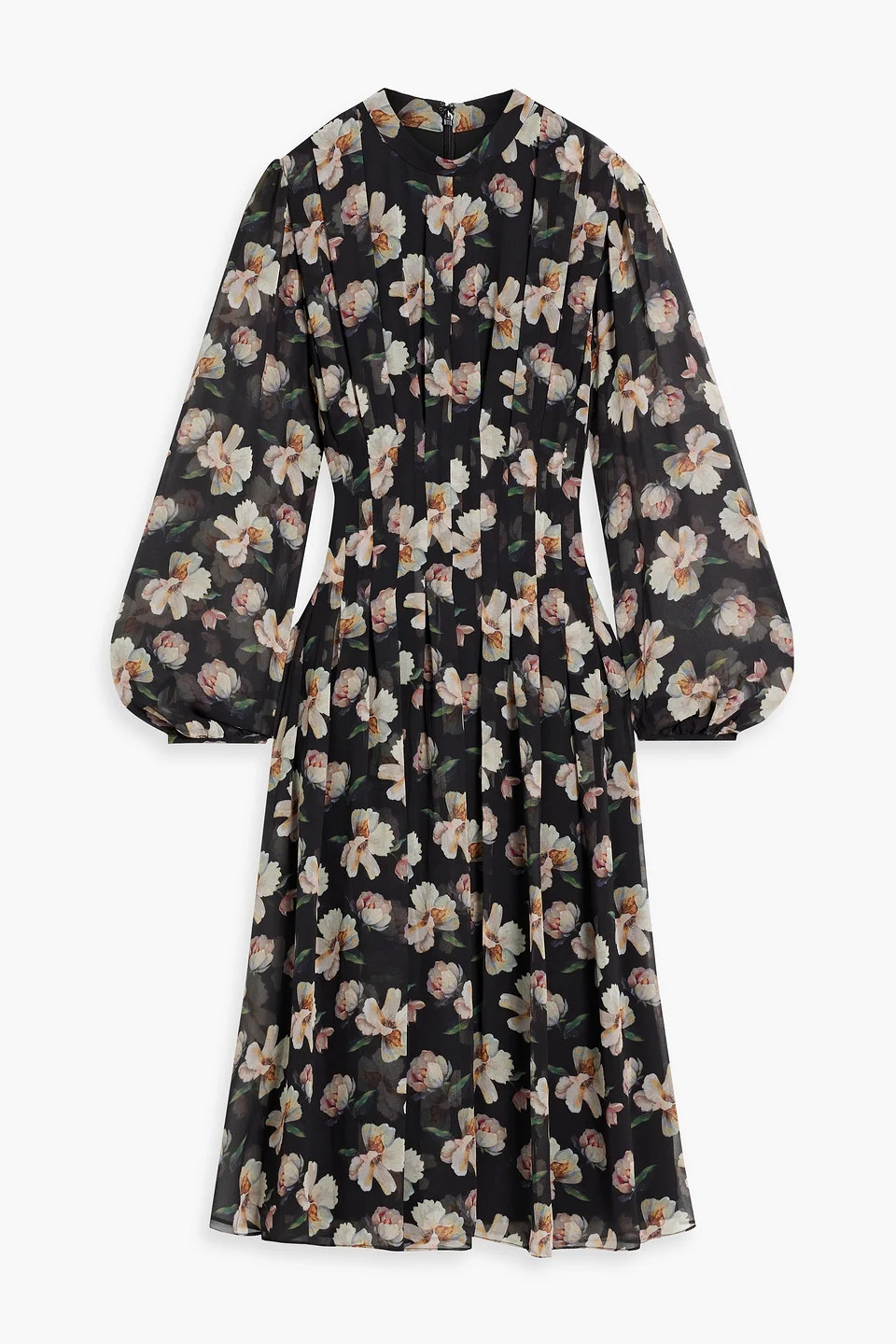 Pleated floral-print chiffon midi dress