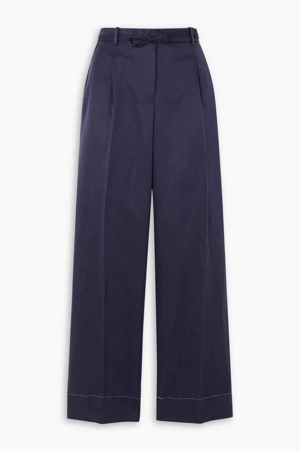 Pleated silk and linen-blend twill straight-leg pants