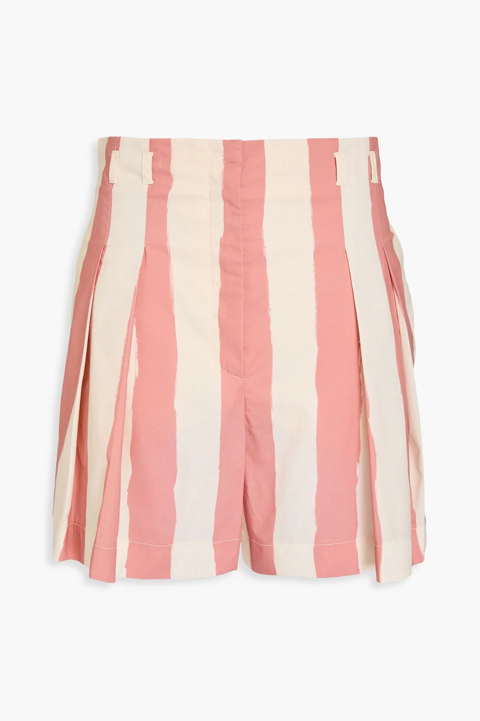 Shorts striped poplin cotton-blend pleated high-rise cut concealed hook and zip fastening at front mid-weight, slightly stretchy fabric machine wash or dry clean made in italy 98% Cotton 2% Elastane Product Code 1647597355857789