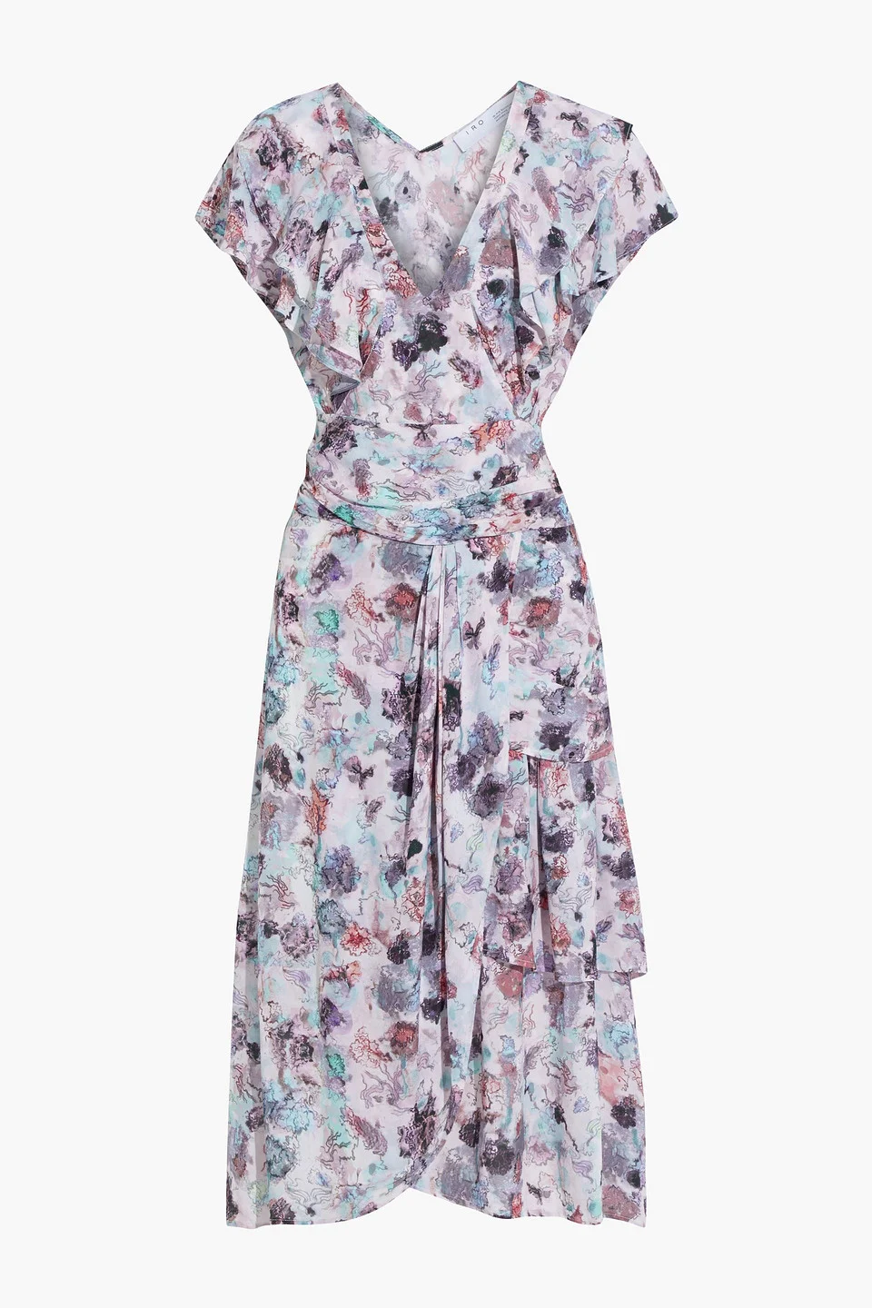Dress printed crepe de chine pleated ruffled draped concealed zip fastening along side slightly stretchy fabric mid-weight fabric dry clean imported 100% Viscose Product Code 38063312418953997