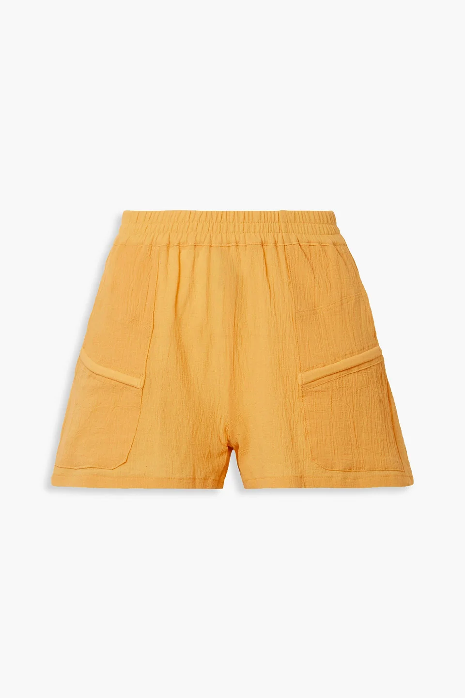 Shorts cotton-gauze elasticated waistband mid-rise cut back welt pocket two side slit pockets pull on non-stretchy fabric lightweight fabric dry clean 100% Cotton Product Code 1647597317062048