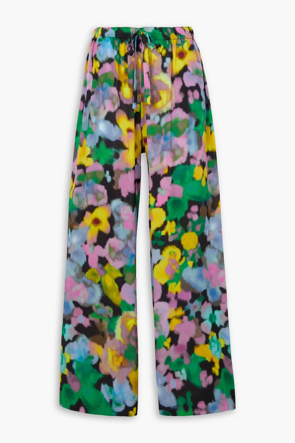 Wide-leg pants printed crepe two side slit pockets elasticated drawstring waist high-rise cut pull on lightweight, non-stretchy fabric dry clean imported 100% Viscose Product Code 1647597348159886