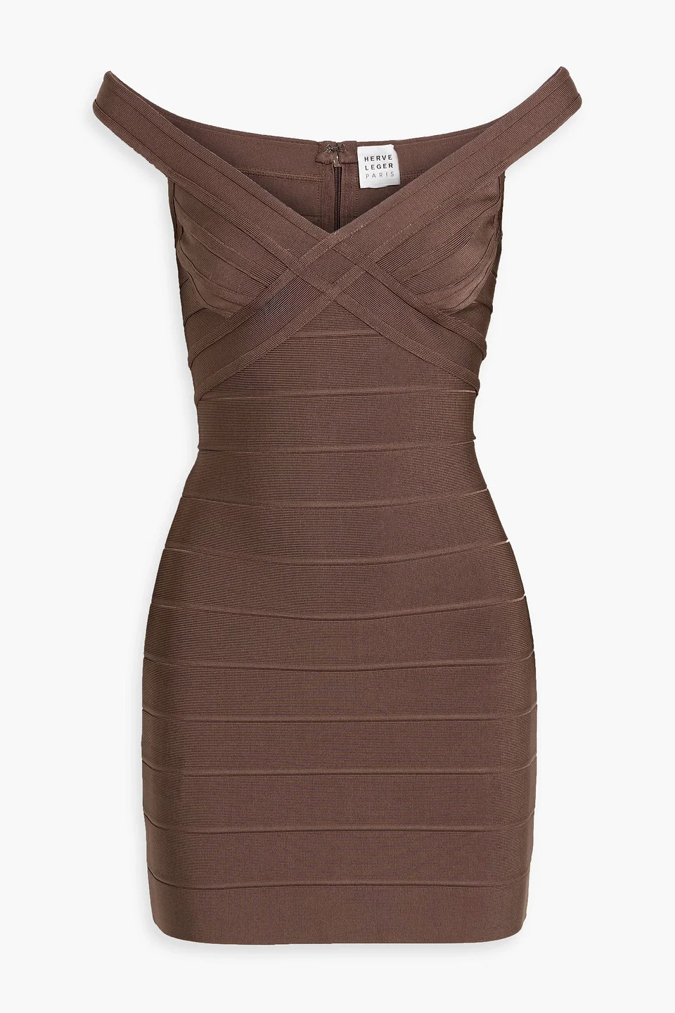 Off-the-shoulder dress bandage concealed hook and zip fastening at back mid-weight, sculpting fabric dry clean imported 90% Recycled rayon 9% Nylon 1% Spandex Product Code 46376663163068200