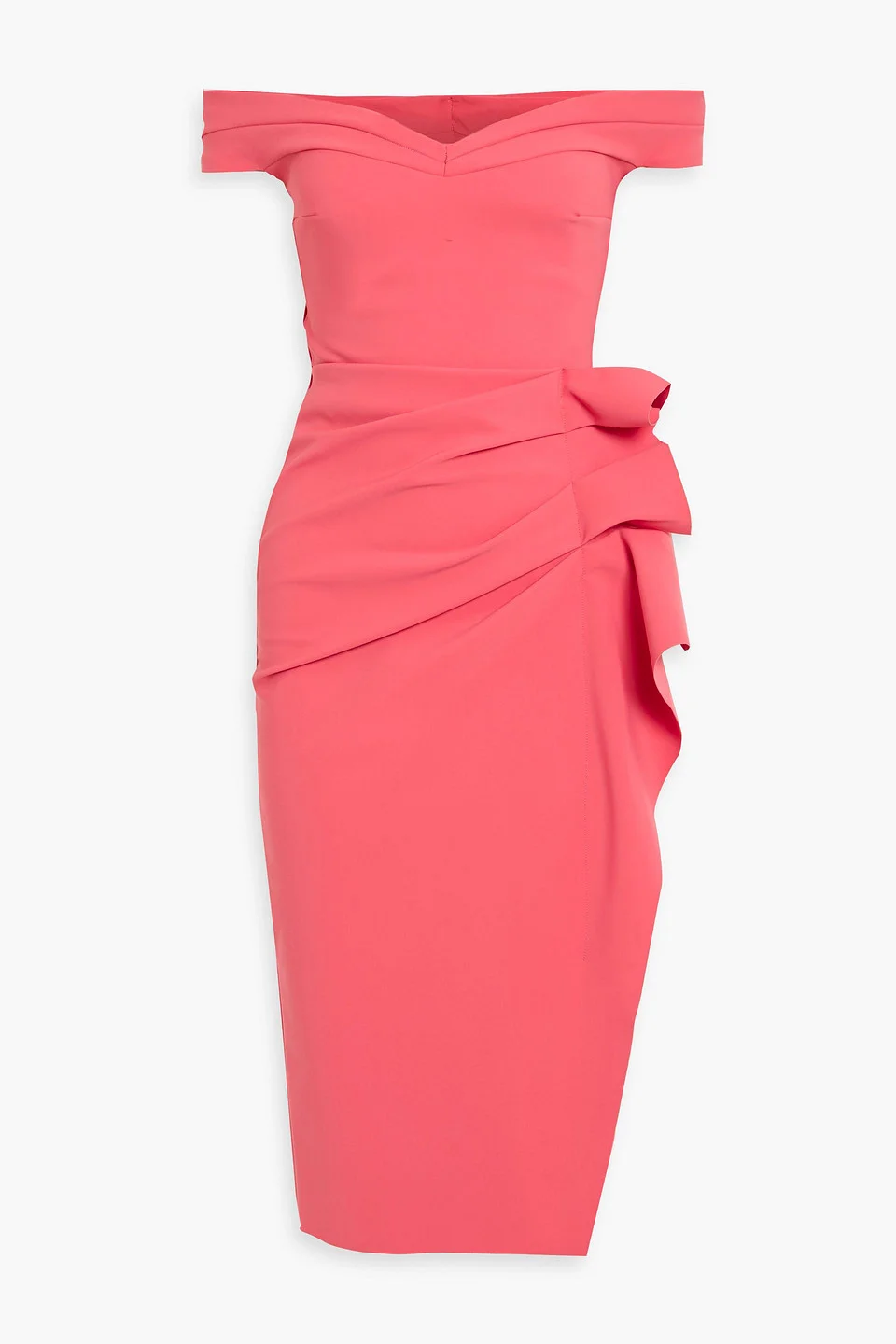 Off-the-shoulder dress stretch-jersey ruffled padded cups slips on mid-weight, stretchy fabric machine wash or dry clean made in italy 75% Polyamide 25% Elastane Product Code 46376663163070752