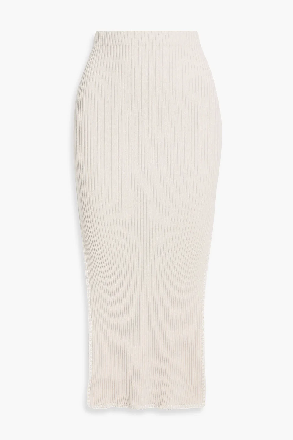 Skirt cashmere and cotton-blend ribbed elasticated waist side slits slips on mid-weight knit hand wash imported 95% Cashmere 5% Cotton Product Code 46376663163096145