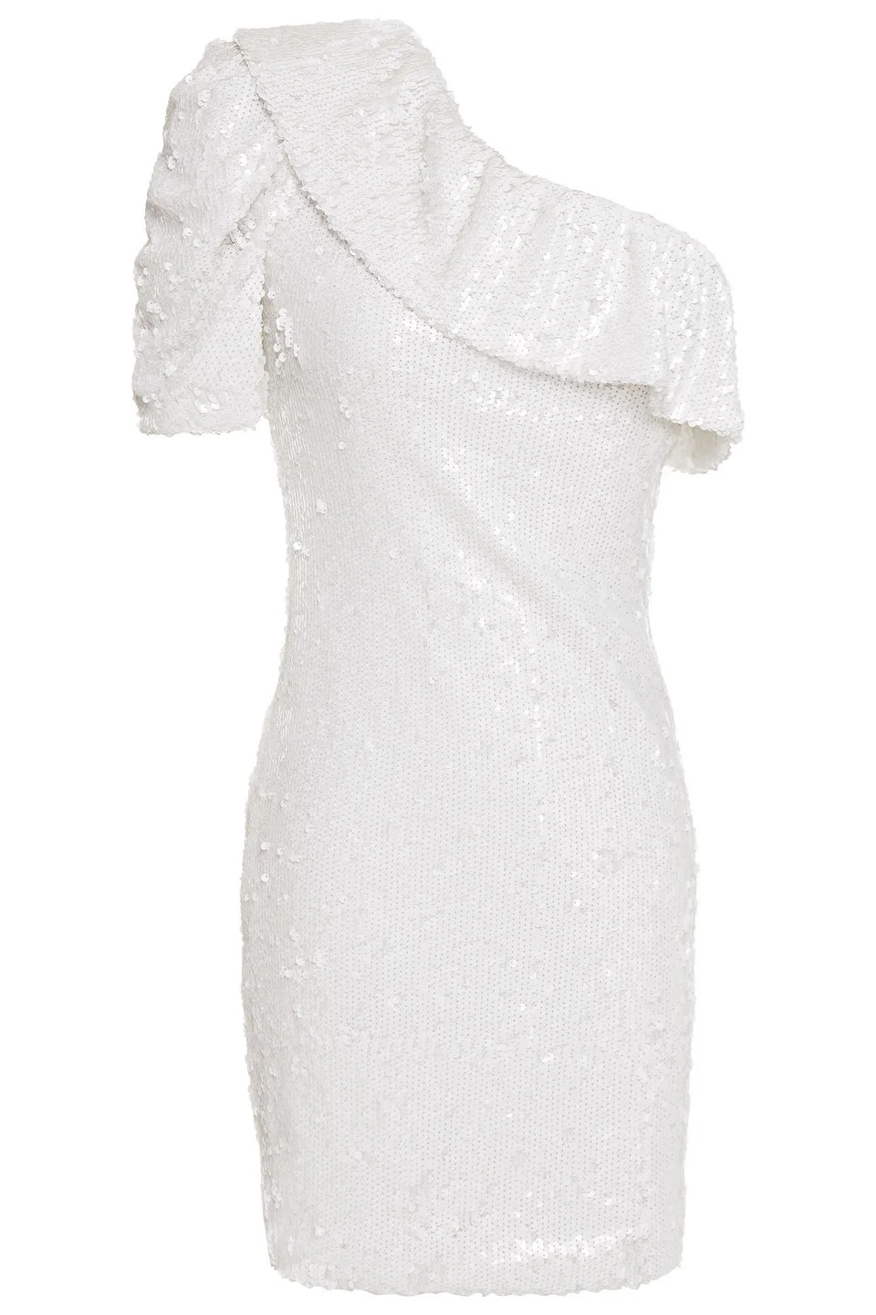 Roxe one-shoulder ruffled sequined tulle mini dress