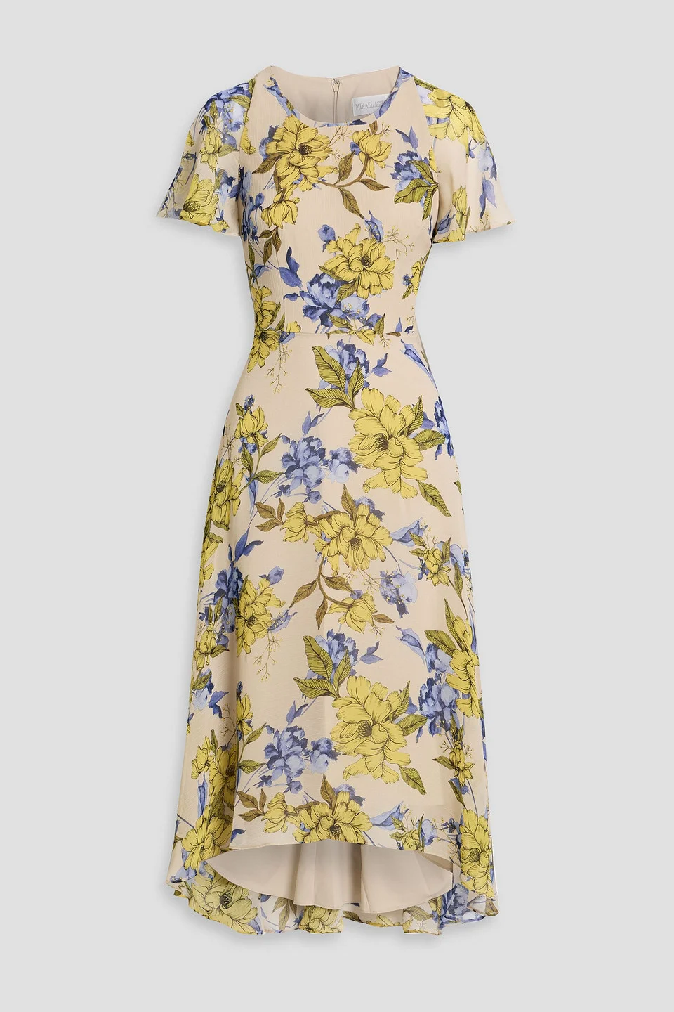 Dress floral-print crepon ruffled asymmetric hem concealed hook and zip fastening at back fully lined lightweight, non-stretchy fabric dry clean imported Garden party, bridal/ baby shower, brunch – you name it and Mikael Aghal’s floral midi is there. We love the swishy, high-low hem and fluttery short sleeves. The yellow and blue booms look as if they’ve been drawn by hand giving it an extra special feel. 100% Polyester Product Code 46376663162971518