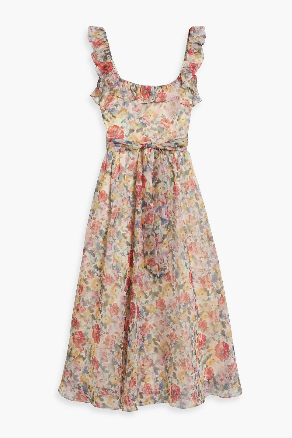 Dress floral-print organza ruffled trims detachable waist tie concealed hook and zip fastening at back fully lined lightweight, non-stretchy fabric dry clean imported 100% Polyester Product Code 46376663162886443