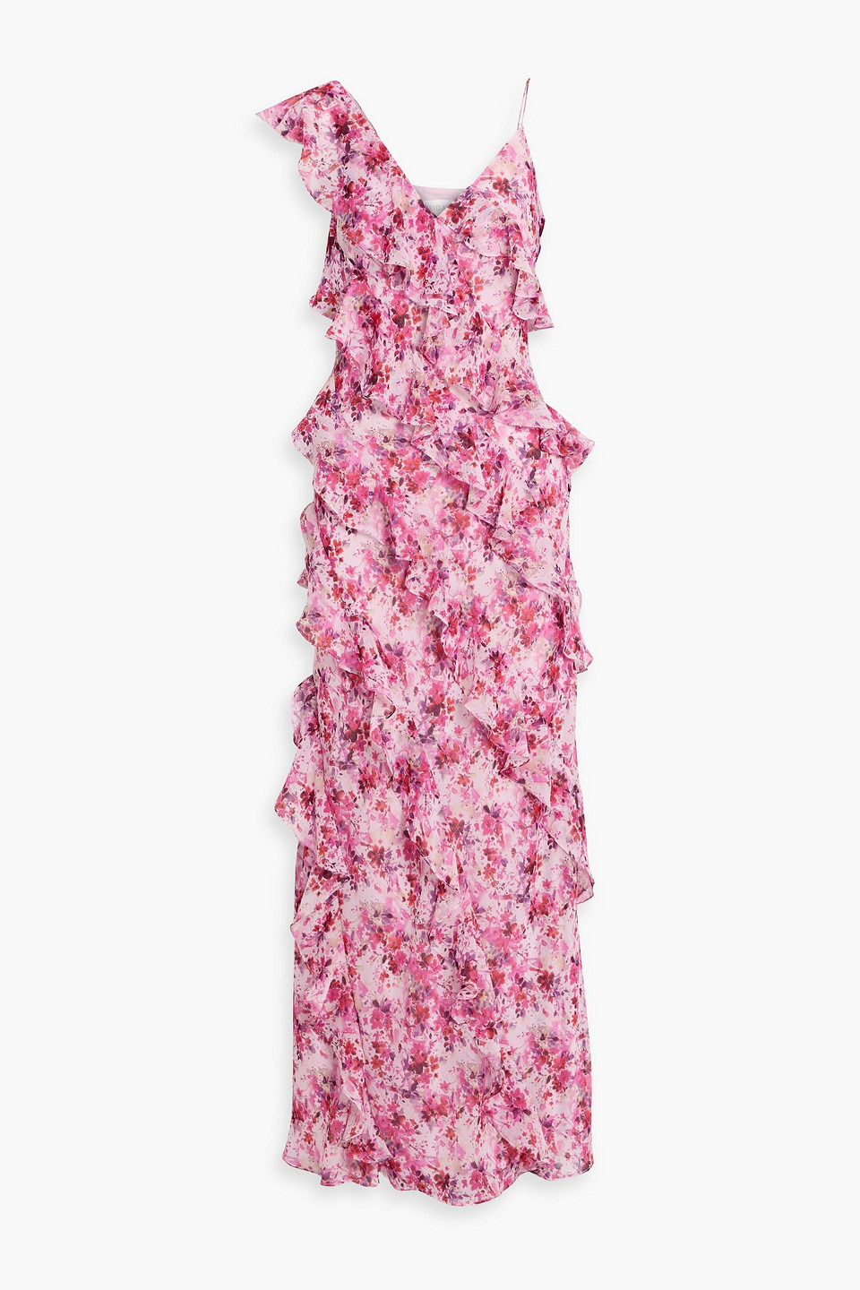 Ruffled metallic floral-print georgette maxi dress