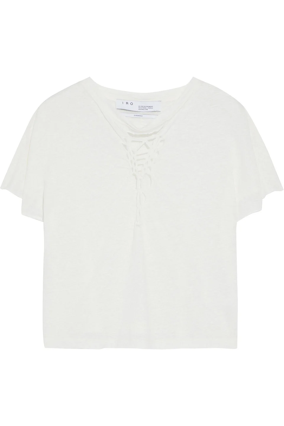Top linen-jersey distressed macrame trims cropped slips on stretchy fabric mid-weight fabric dry clean imported 100% Linen Product Code 17476499599334918