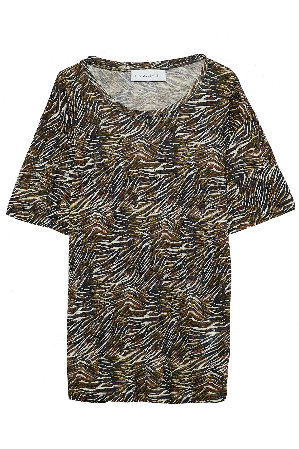 T-shirt zebra-print linen-jersey distressed slips on stretchy fabric lightweight fabric hand wash or dry clean imported 100% Linen Product Code 1647597282797856