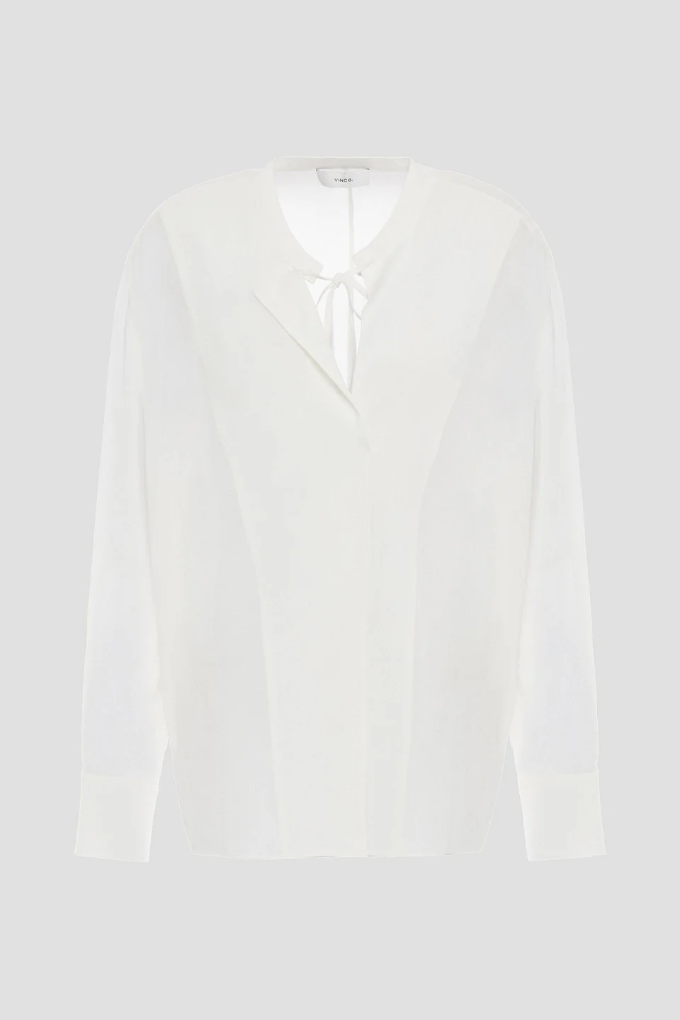 Blouse silk crepe de chine buttoned cuffs tie-fastening keyhole at front stretchy fabric lightweight fabric dry clean imported 100% Silk Product Code 20346390235738060