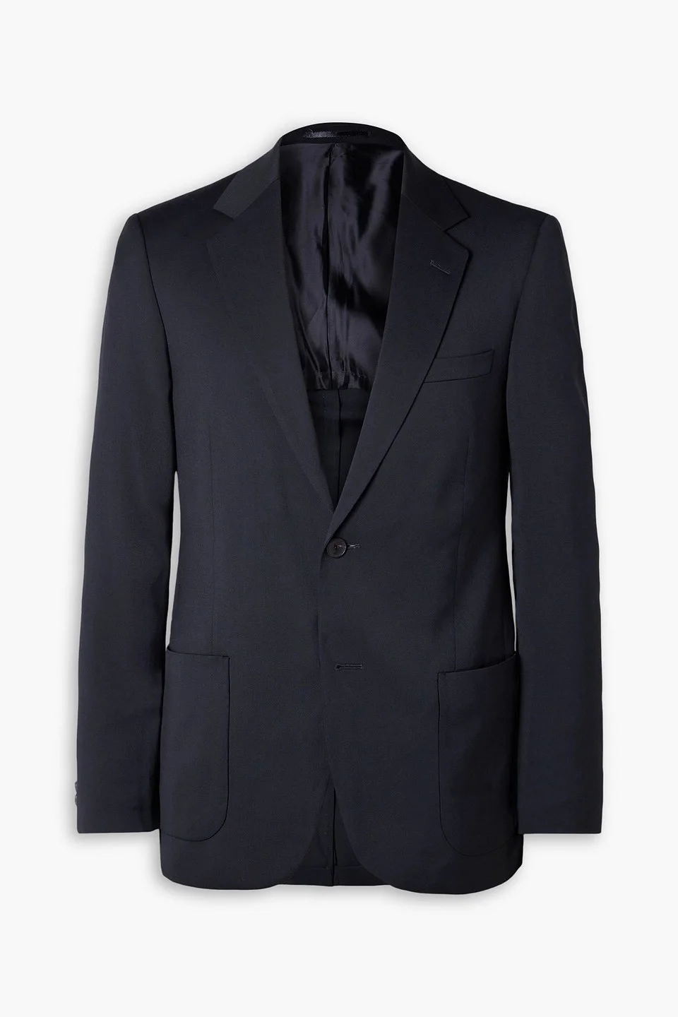 Suit jacket wool-twill shoulder pads notch lapels chest pocket front patch pockets back vent partially lined buttoned cuffs button fastenings through front mid-weight, non-stretchy fabric dry clean imported 100% Wool Product Code 1647597320281706