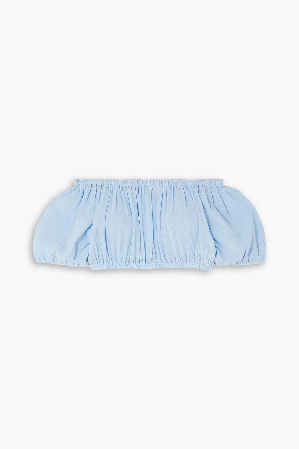 Sousanna cropped off-the-shoulder crinkled cotton-gauze top