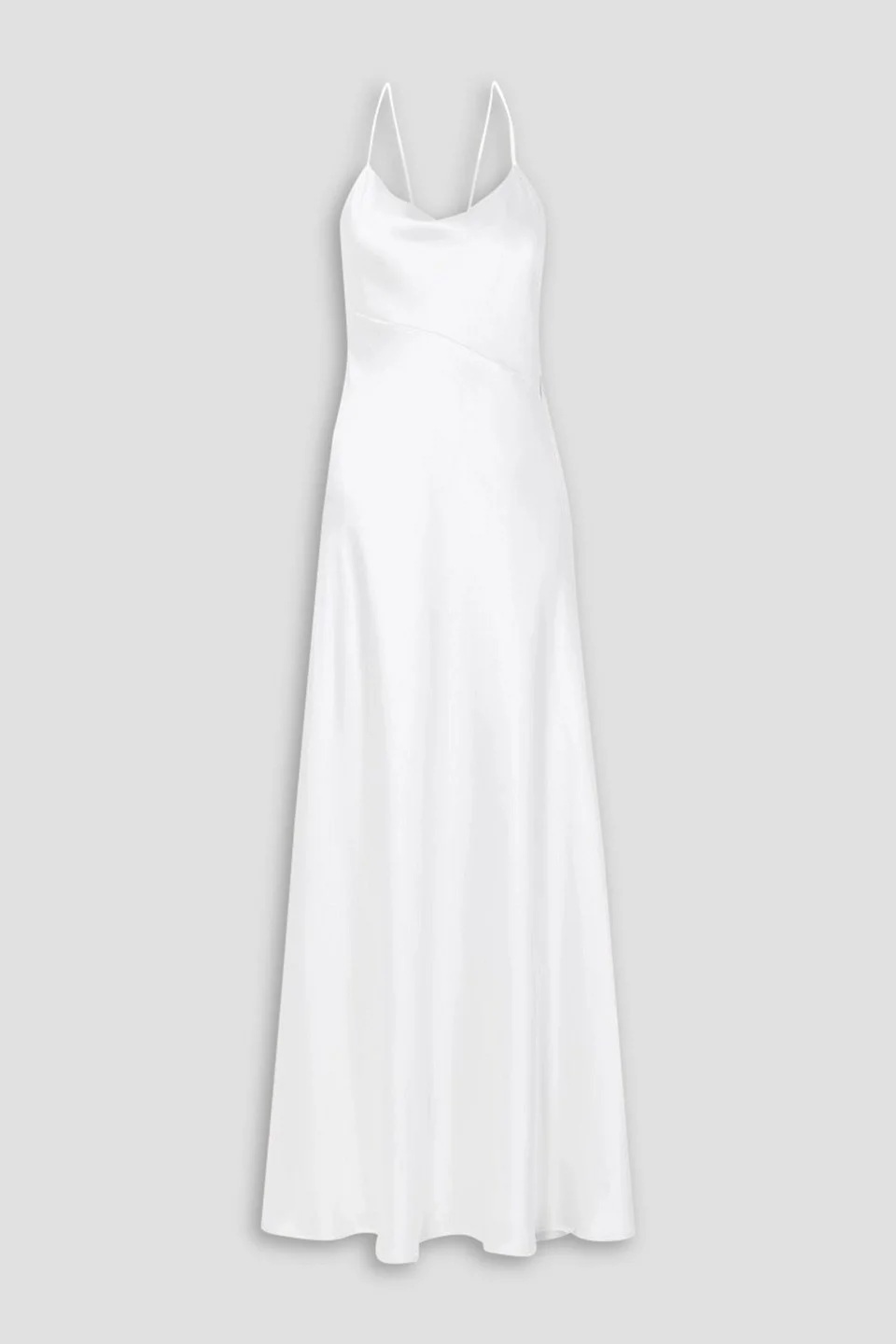 Gown silk-satin open back draped ties at back concealed zip fastening along back fully lined lightweight, non-stretchy fabric dry clean made in uk Galvan's radiant 'Spetses' gown may be simple, but it'll still make a big impact on your wedding day. It's cut from lightweight silk-satin that elegantly skims the contours of your body before falling to a floor-sweeping hem. The draped neckline is framed by dainty shoulder straps that cross over at the open back. 100% Silk Product Code 1647597351798641