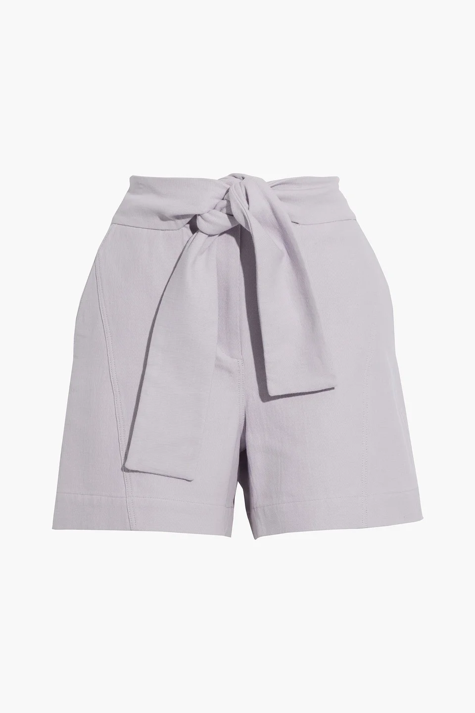 Shorts cotton-twill waist ties two front slant pockets two back welt pockets high-rise cut concealed zip fastening along front non-stretchy fabric mid-weight fabric dry clean imported 100% Cotton Product Code 38063312418996973