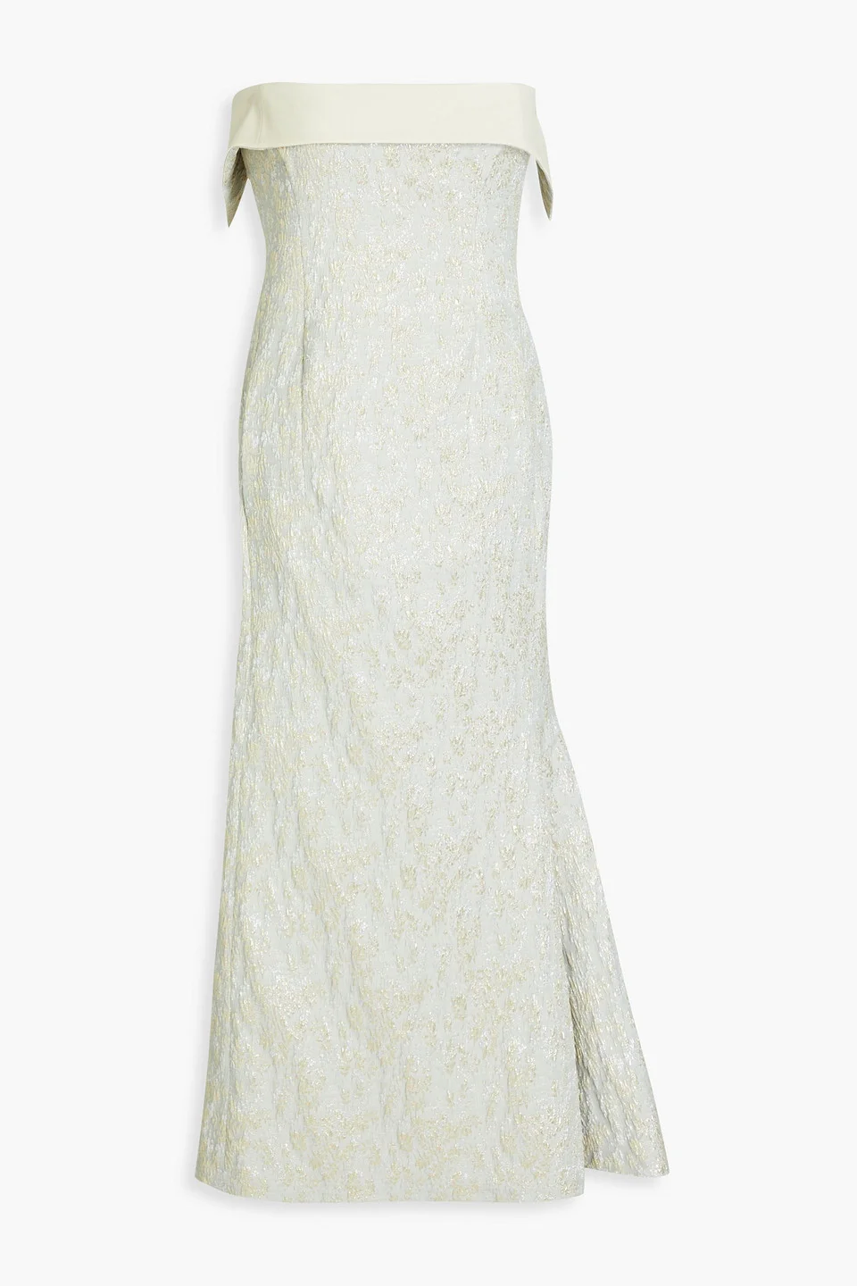 Strapless metallic jacquard midi dress