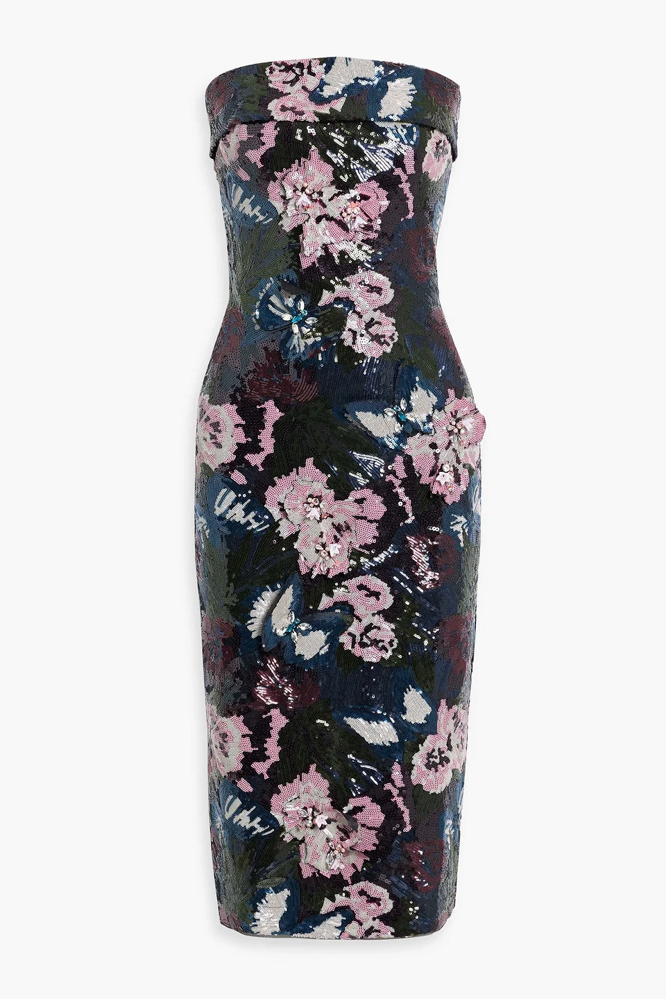 Strapless dress mesh appliqued sequins crystals back vent concealed hook and zip fastening at back internal bustier lightweight, heavily embellished fabric dry clean imported 100% Polyester Product Code 46376663163078895