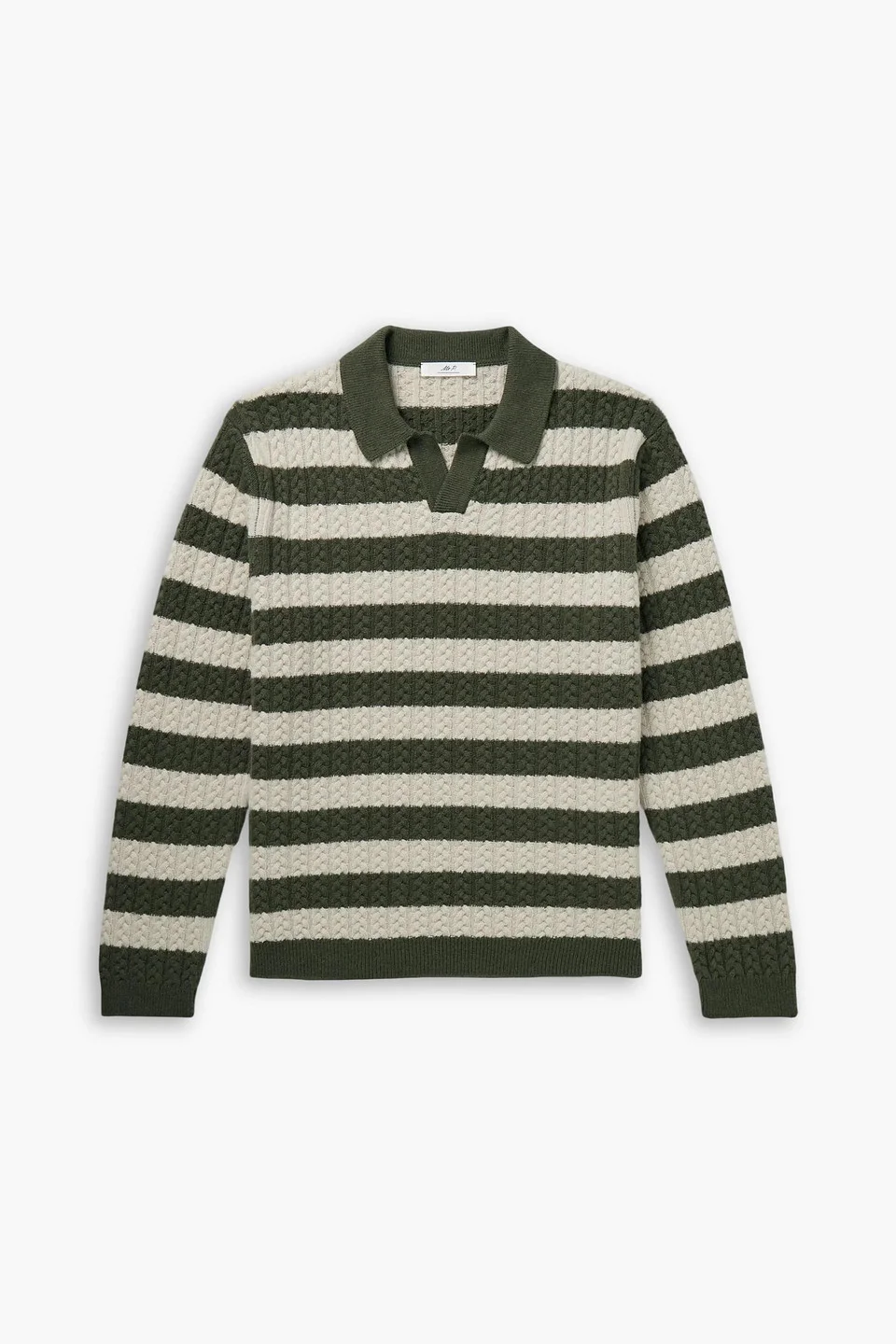 Polo sweater striped cable-knit wool ribbed trims slips on mid-weight knit hand wash or dry clean made in italy 100% Lambswool Product Code 46376663163063742
