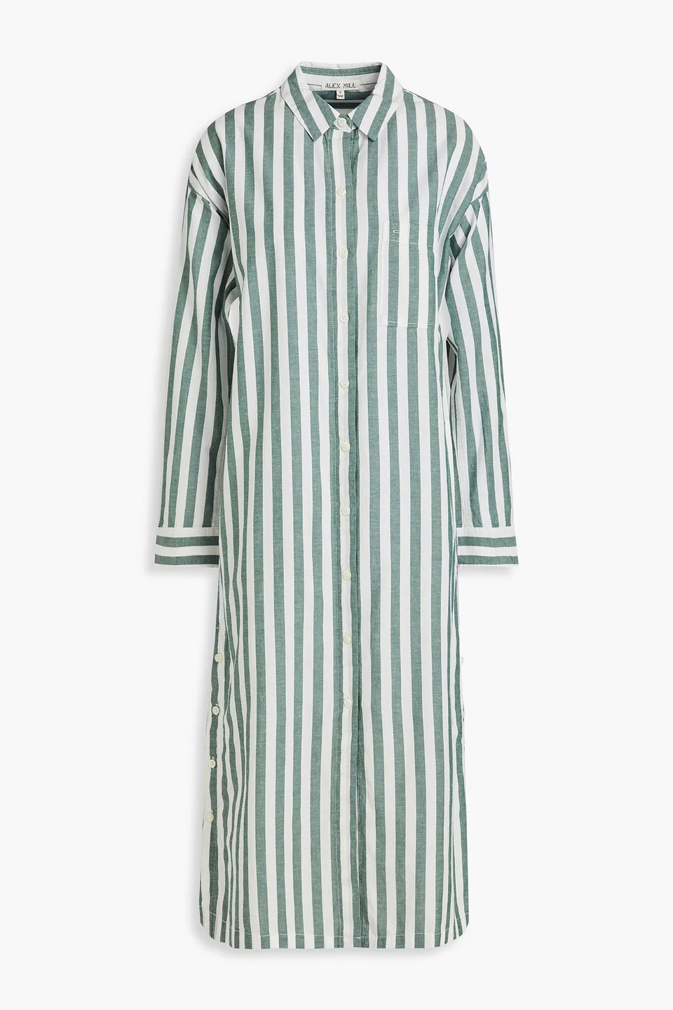 Shirt dress striped cotton and linen-blend button-detailed buttoned cuffs breast pocket two side slit pockets button fastenings through front mid-weight, non-stretchy fabric machine wash imported 74% Cotton 26% Linen Product Code 1647597359500429
