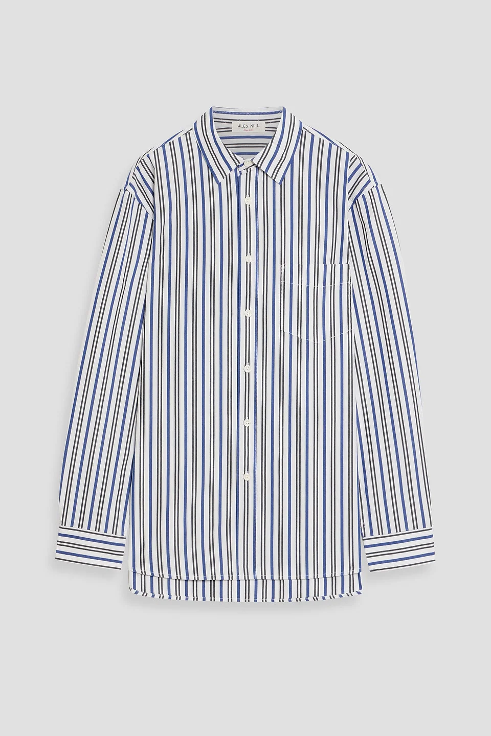 Shirt striped cotton-poplin classic collar long sleeves buttoned cuffs button fastenings through front mid-weight, non-stretchy fabric dry clean imported 100% Cotton Product Code 46376663163018483