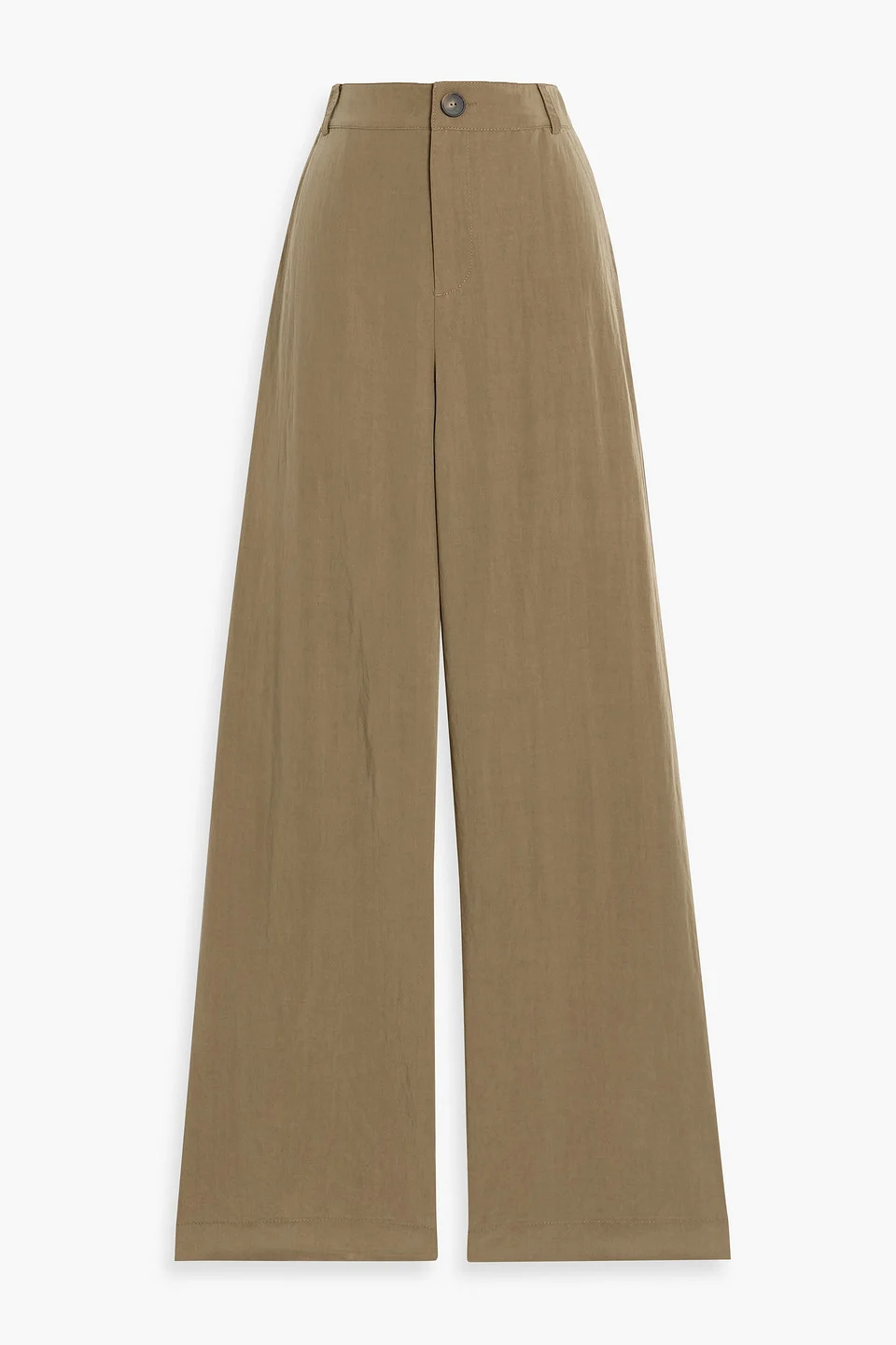Wide-leg pants tencel™ lyocell-blend front slant pockets back patch pockets partially elasticated waist high-rise cut button and concealed zip fastening at front mid-weight, non-stretchy fabric hand wash imported 83% Tencel™ Lyocell 10% Nylon 7% Wool Product Code 46376663163072527