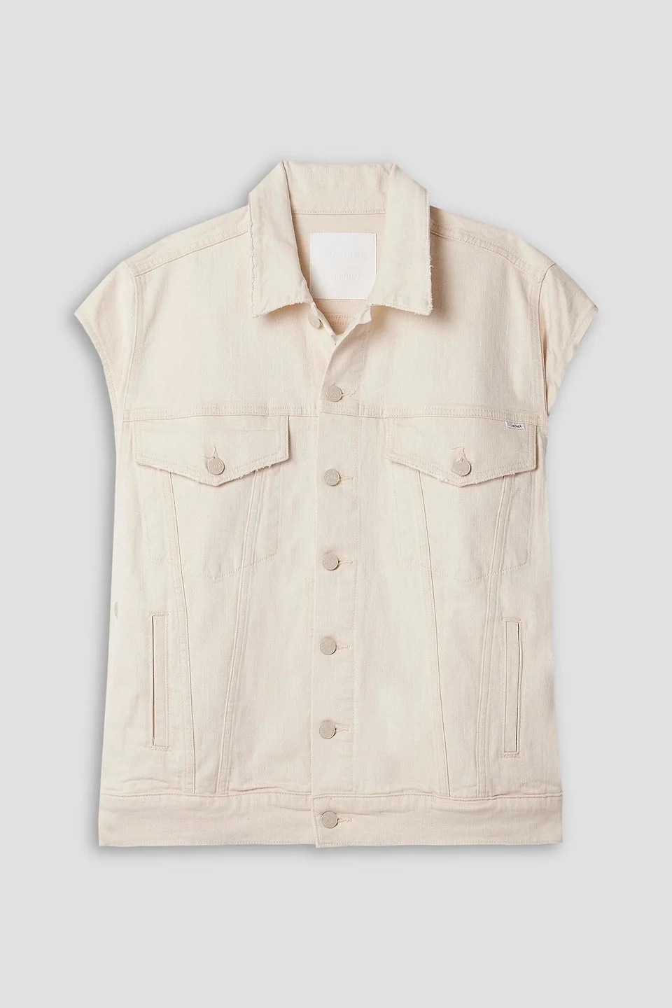 Vest denim frayed trims front welt pockets breast pockets button fastenings through front button fastenings along sides mid-weight, stretchy fabric dry clean We love a hero piece that can transform depending on your vibe. MOTHER's 'The Drifter' vest is designed with buttons along the sides and hem, so you can easily adjust the shape. The frayed trims are also a nice touch. 98% Cotton 2% Elastane Product Code 46376663162956782