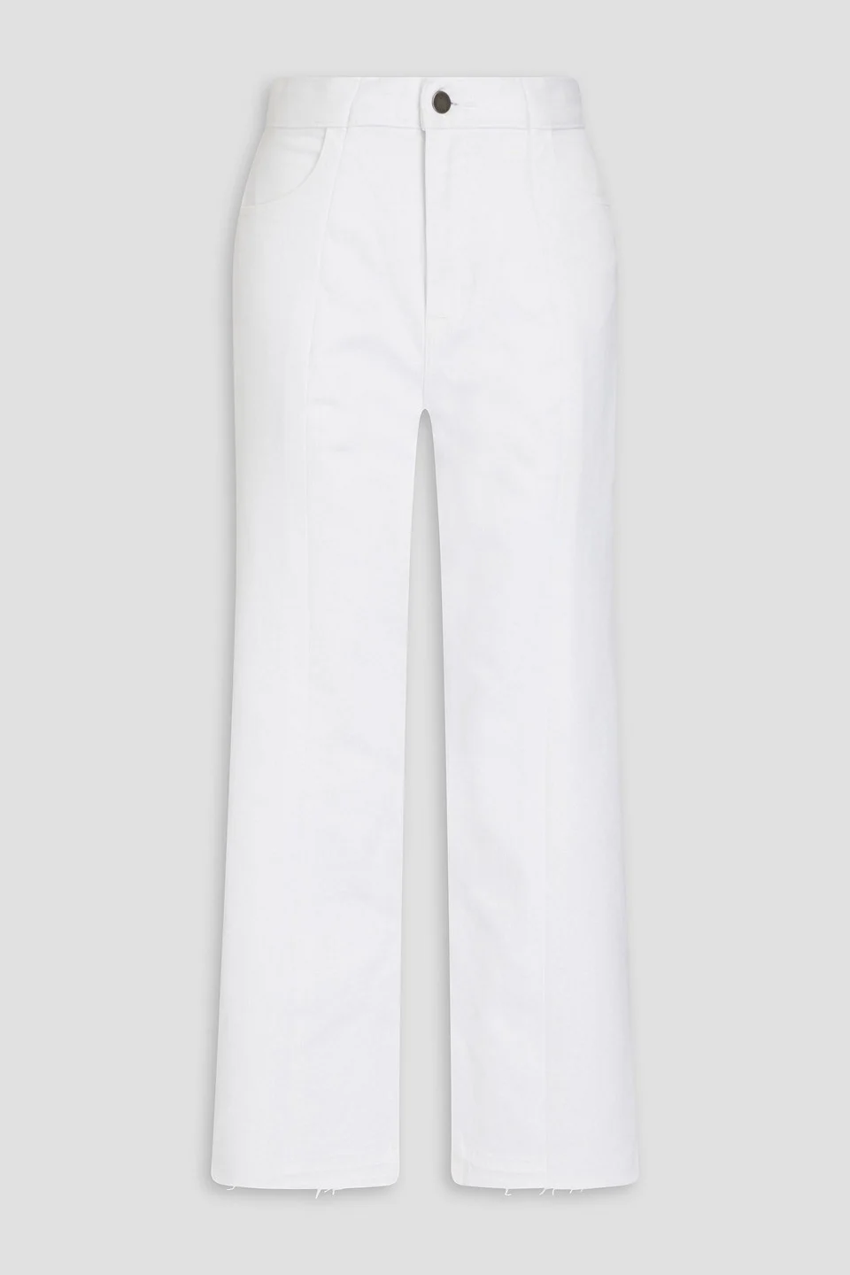 Flared jeans denim high-rise cut multipockets button and concealed zip fastening at front raw-cut cuffs stretchy fabric mid-weight fabric machine wash or dry clean made in uk due to the upcycled nature of the design, this piece may differ slightly to that pictured E.L.V. DENIM upholds the values of sustainability and quality throughout its creation process — these high-rise flared jeans embody the brand's mission. Upcycled to breathe new life into fabric from a past-season pair of jeans, the essential silhouette will stand the test of time thanks to the exaggerated flared panel. Pair it with the label’s ‘The Monochrome’ satin camisole ; for a chic ensemble. 78% Cotton 20% Lyocell 2% Polyurethane Product Code 1647597337271787