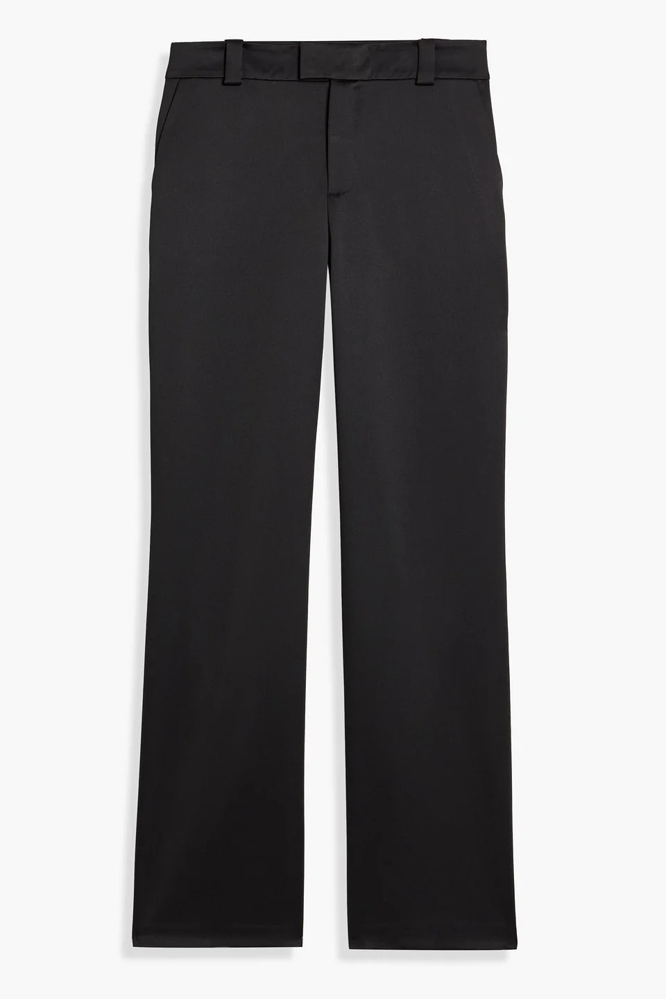 Flared pants satin front slant pockets back welt pockets belt loops high-rise cut concealed hook, button and zip fastening at front mid-weight, non-stretchy fabric dry clean imported 100% Polyester Product Code 46376663163006854