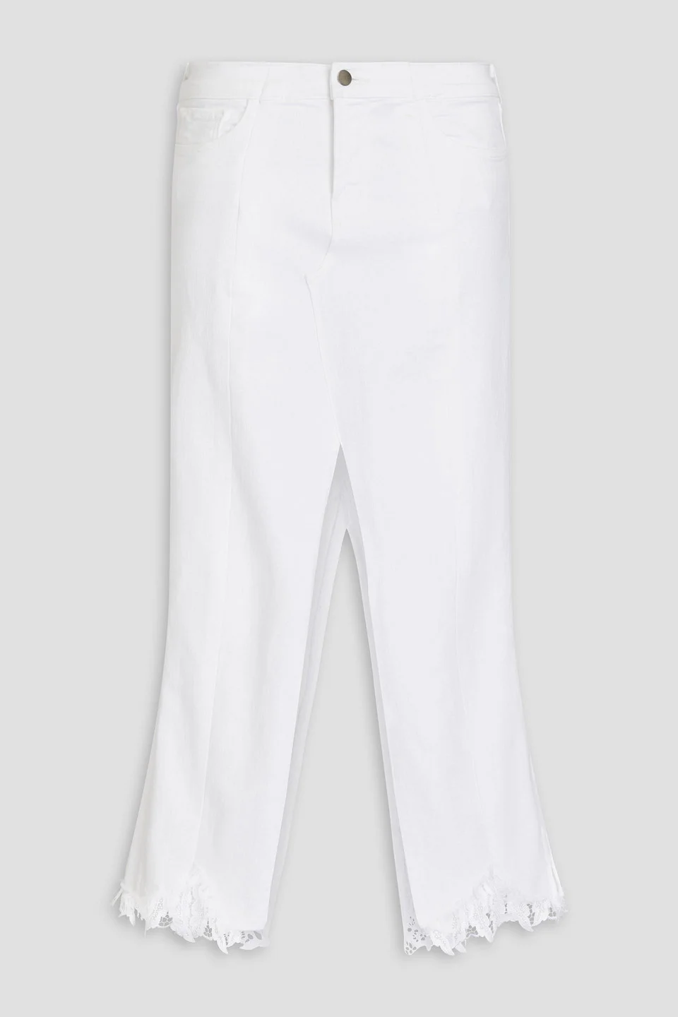 Skirt denim lace trims multipockets front and back splits button and concealed zip fastening at front stretchy fabric mid-weight fabric machine wash or dry clean made in uk due to the upcycled nature of the design, this piece may differ slightly to that pictured From our limited-edition collaboration with E.L.V. DENIM, this midi skirt was refashioned from premium white jeans detailed with a feminine lace trim. Produced locally at the label’s London atelier, the ankle-grazing silhouette sits at the waist and features dramatic front and back splits. Embrace the brand’s mission to revive old garments into statement-making forever pieces and wear it with a simple tank or knit. 90% Cotton 8% Polyester 2% Elastane Product Code 1647597337701713