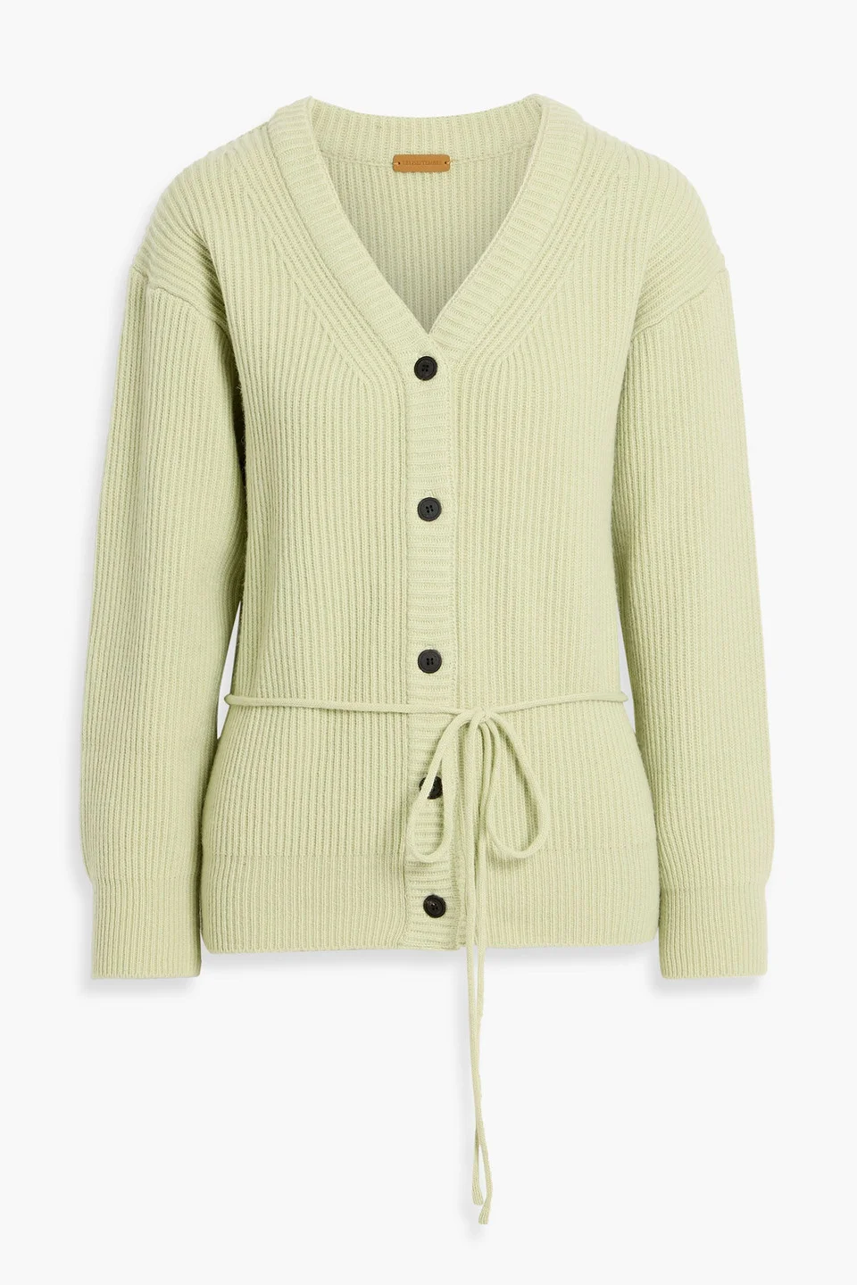 Tie-detailed ribbed wool-blend cardigan