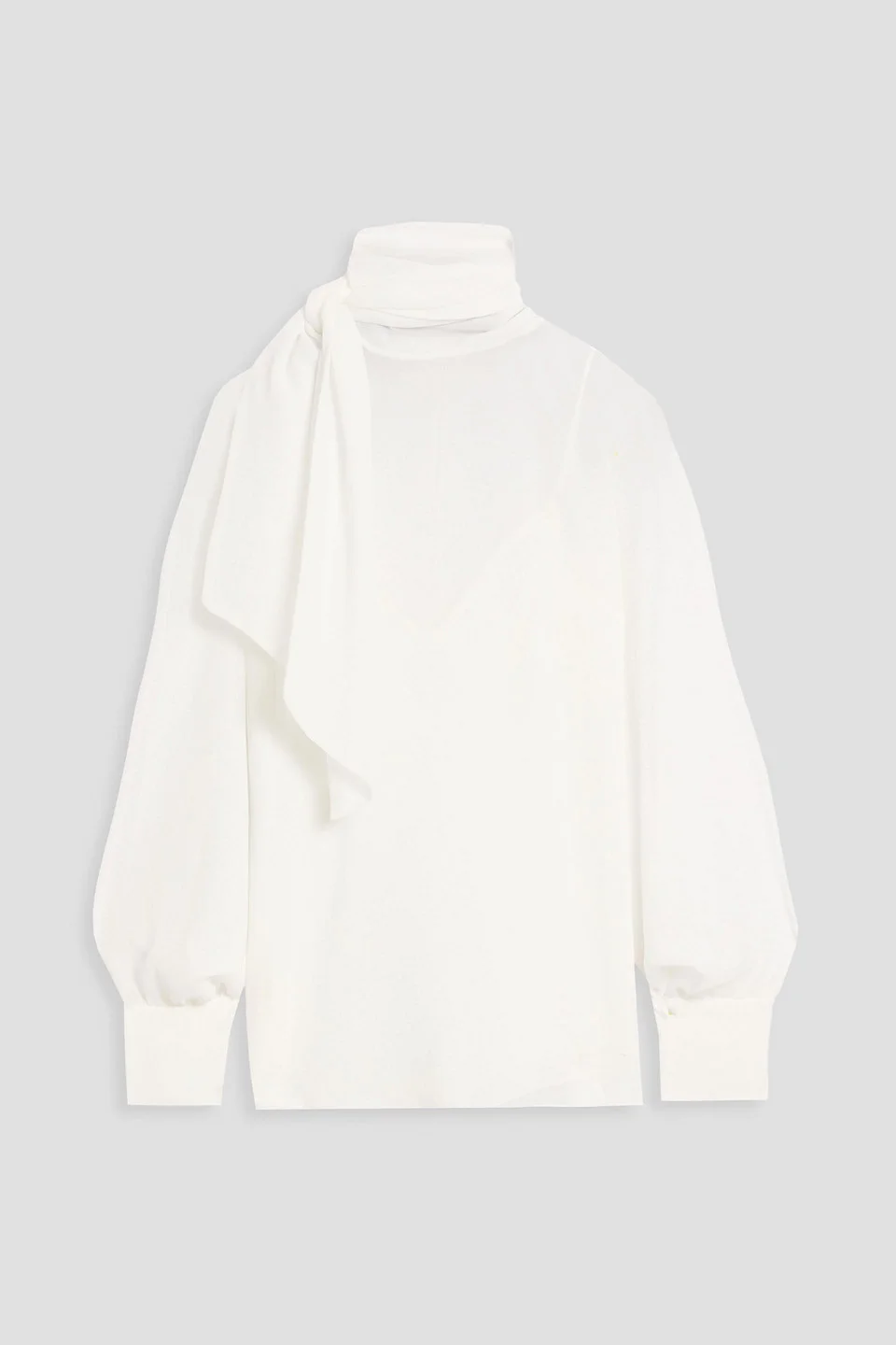 Blouse chiffon neckties buttoned cuffs button-fastening keyhole at back detachable camisole to line lightweight, non-stretchy sheer fabric dry clean imported 100% Polyester Product Code 46376663162975076