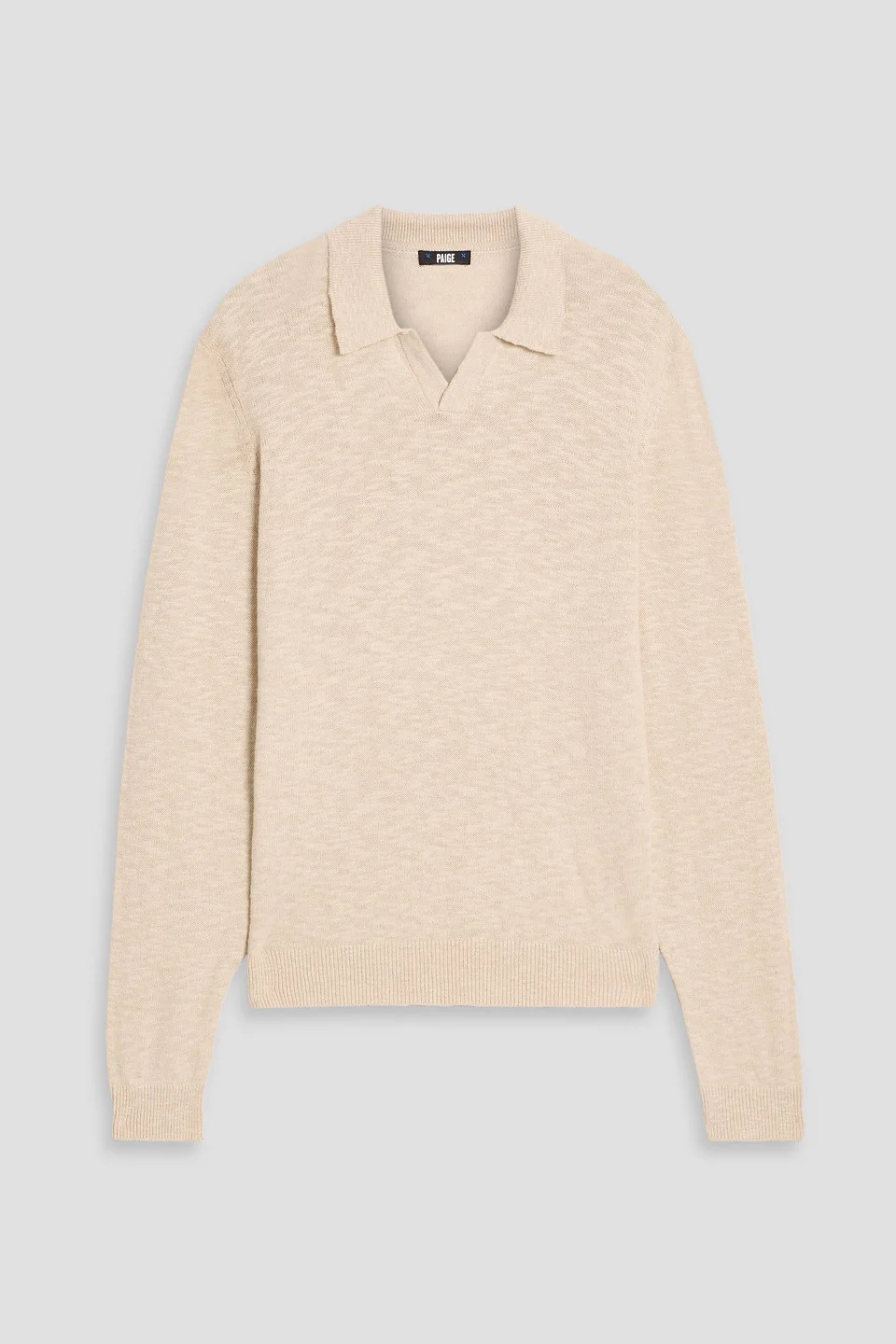 Polo sweater cotton and linen-blend ribbed trims slips on mid-weight knit dry clean imported 85% Cotton 15% Linen Product Code 46376663162998629