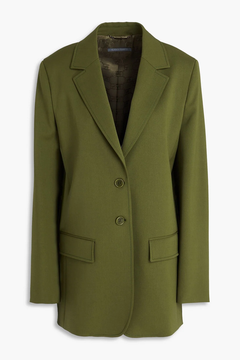 Blazer twill wool-blend shoulder pads non-functioning buttoned cuffs two front flap pockets button fastenings through front fully lined mid-weight, slightly stretchy fabric dry clean matching pants also available made in italy Love this style? Make it a suit with the matching pants 96% Virgin Wool 4% Elastane Product Code 1647597347127540