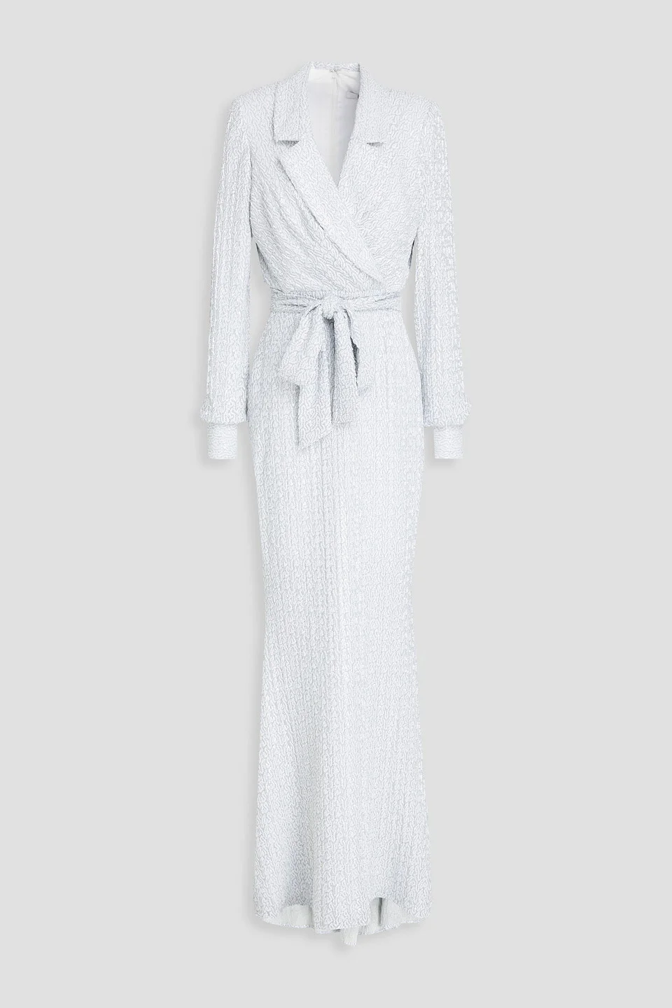 Wrap-effect embellished lamé gown