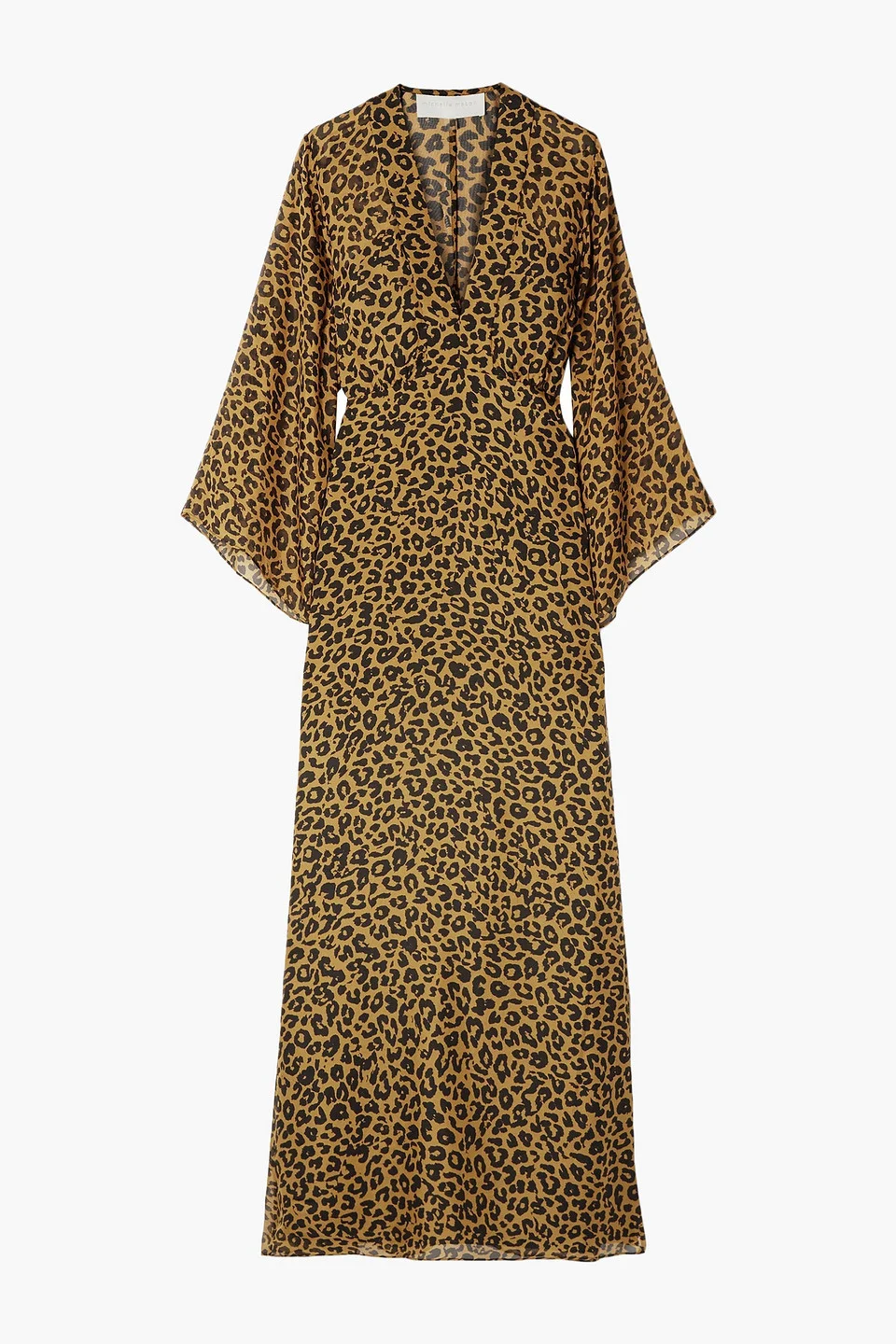 Dress maxi length leopard-print silk-chiffon wrap-effect front gathered bell sleeves concealed hook and zip fastening at back partially lined non-stretchy fabric lightweight fabric dry clean imported 100% Silk Product Code 547799495698606