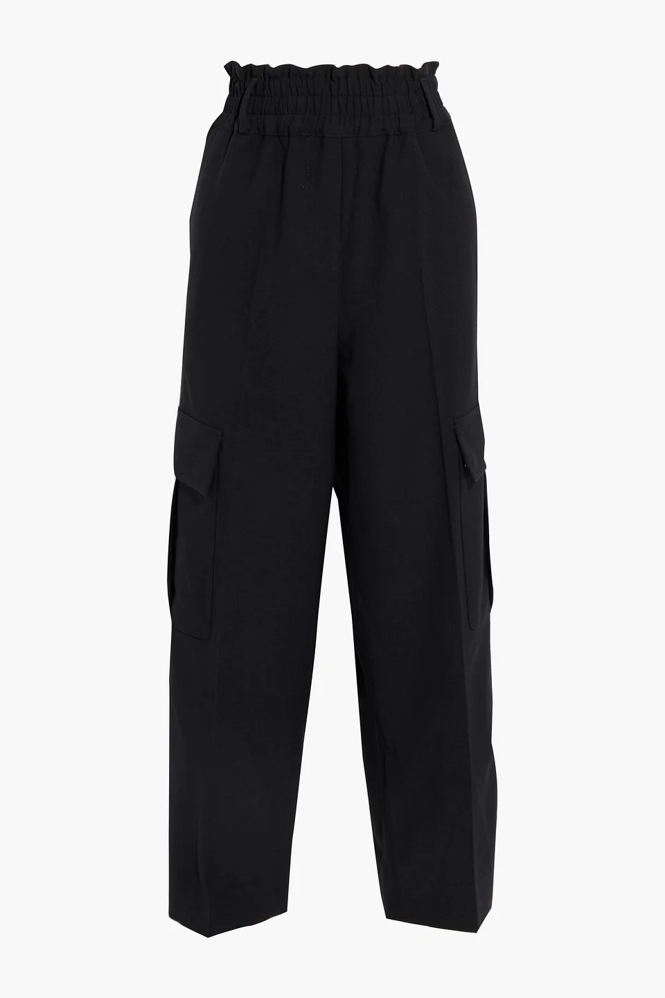 Straight-leg pants woven belt loops two front slant pockets two side flap pockets two back patch pockets elasticated waistband high-rise cut pull on slightly stretchy fabric mid-weight fabric machine wash or dry clean made in italy 53% Polyester 43% Virgin Wool 4% Elastane Product Code 38063312418337965