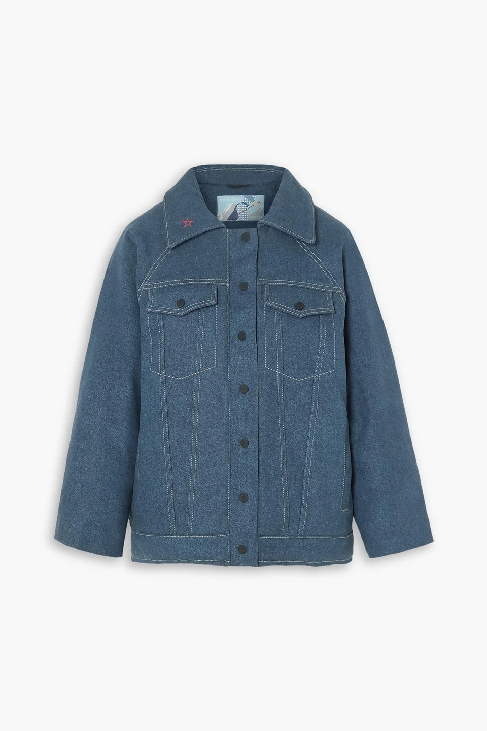 Jacket denim embroidered padded breast pockets zip pockets snap and concealed zip fastenings through front fully lined mid-weight, non-stretchy fabric dry clean imported Perfect Moment's 'Corentine' jacket celebrates the label's signature Northern Star logo. Cut from soft denim and padded for warmth, it's embroidered with a large-scale version of the motif across the back. The relaxed shape means you can comfortably layer it over chunky knits. 79% Cotton 20% Recover™ cotton 1% Lycra® Product Code 1647597348243843
