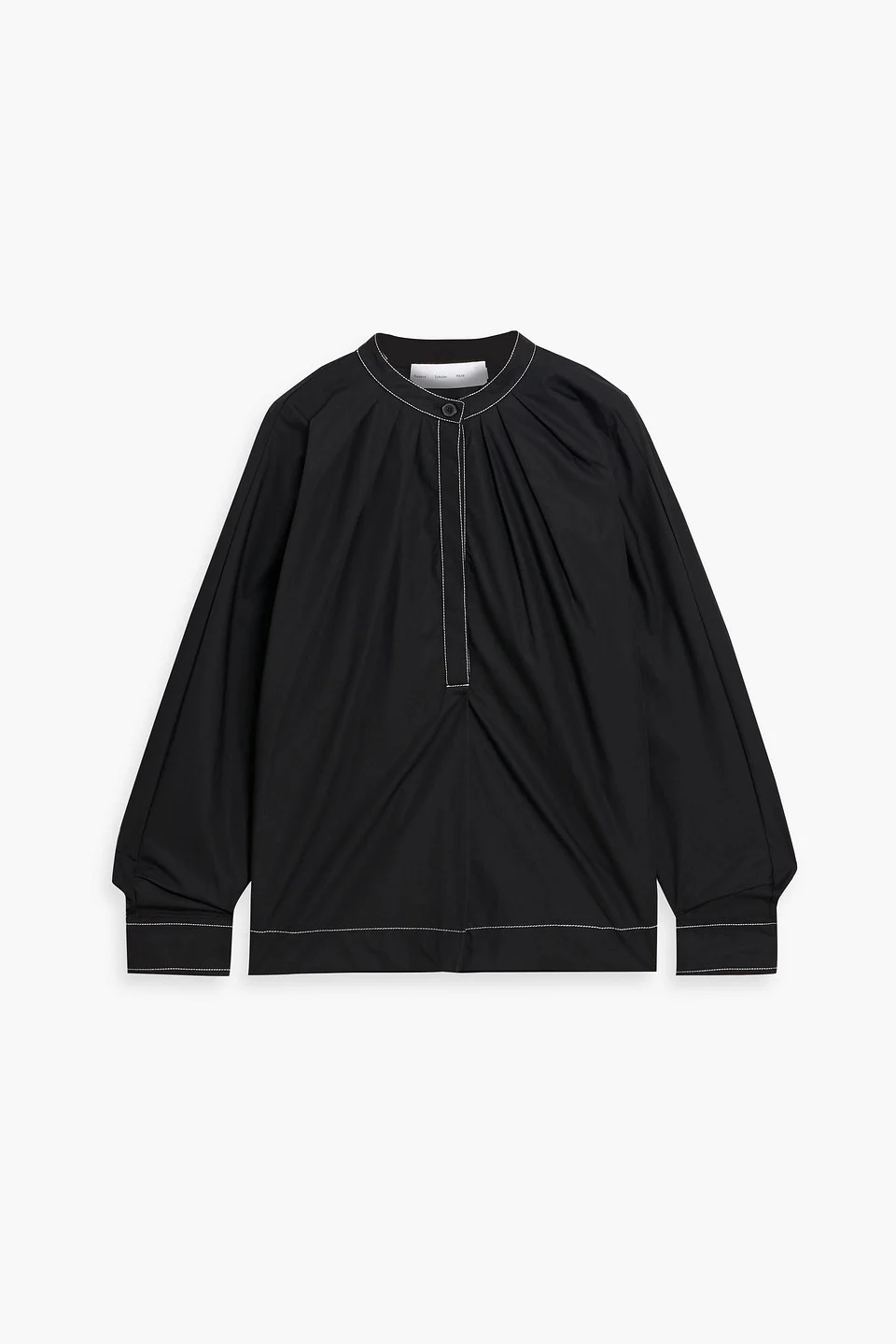 Blouse cotton-poplin gathered topstitching buttoned cuffs button-fastening keyhole at front mid-weight, non-stretchy fabric machine wash imported 100% Cotton Product Code 46376663163064342