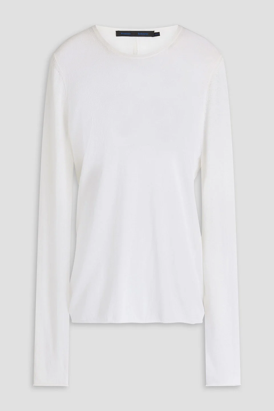 Sweater cotton and silk-blend cutout ribbed trims slips on lightweight knit hand wash or dry clean made in italy 68% Cotton 32% Silk Product Code 46376663162871711