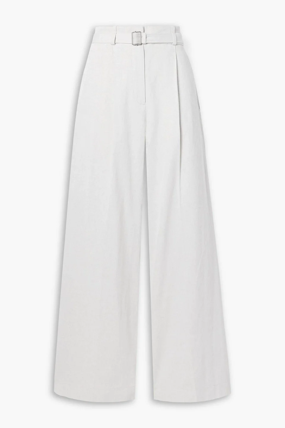 Wide-leg pants cotton and linen-blend synthetic trims pleated detachable belt side slant pockets back welt pockets belt loops high-rise cut concealed hook, button and zip fastening at front mid-weight, non-stretchy fabric dry clean imported 80% Cotton 20% Linen Product Code 46376663163076886