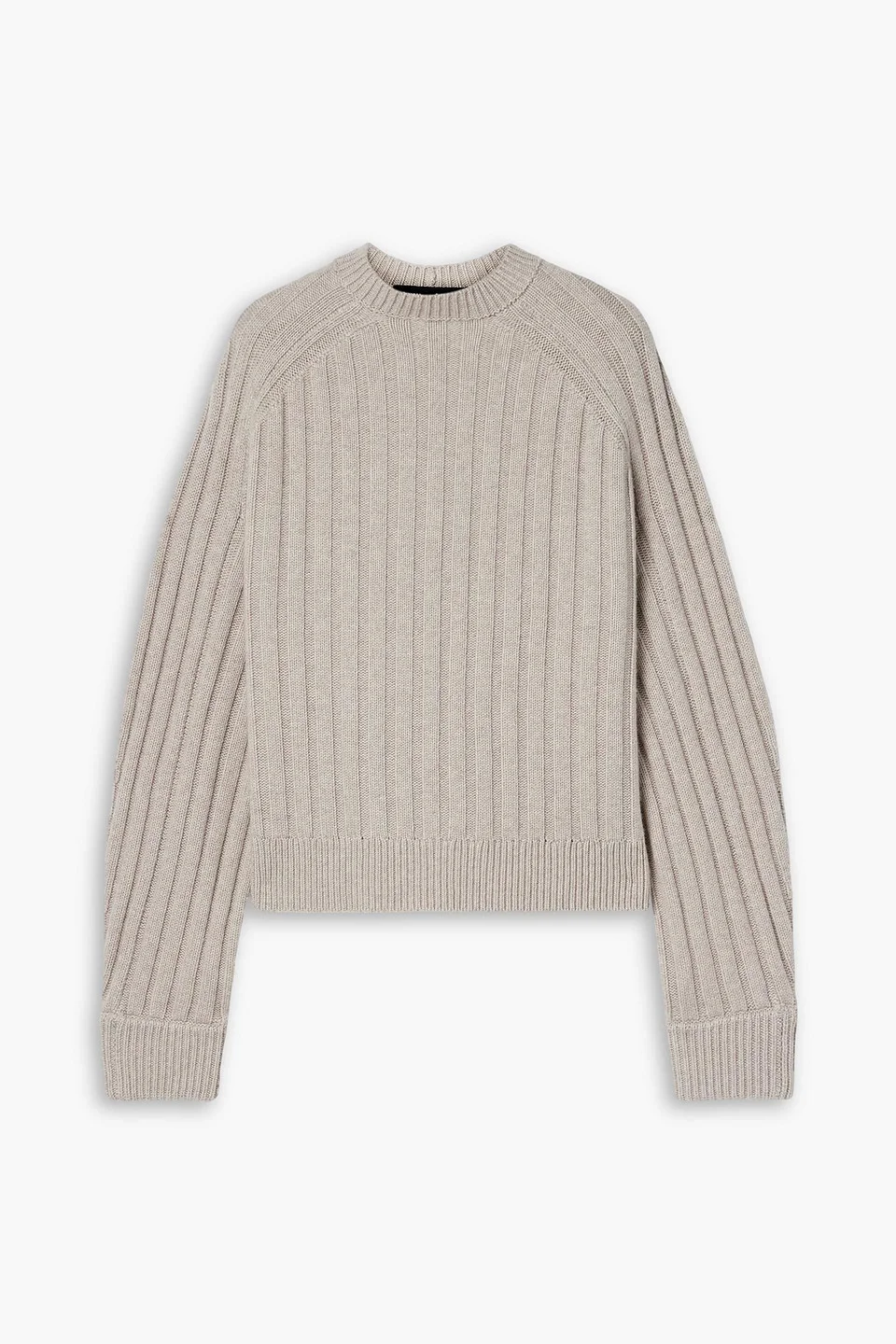 Sweater melange wool and cashmere-blend ribbed side slits slips on mid-weight knit dry clean imported 70% Wool 30% Cashmere Product Code 46376663163076788