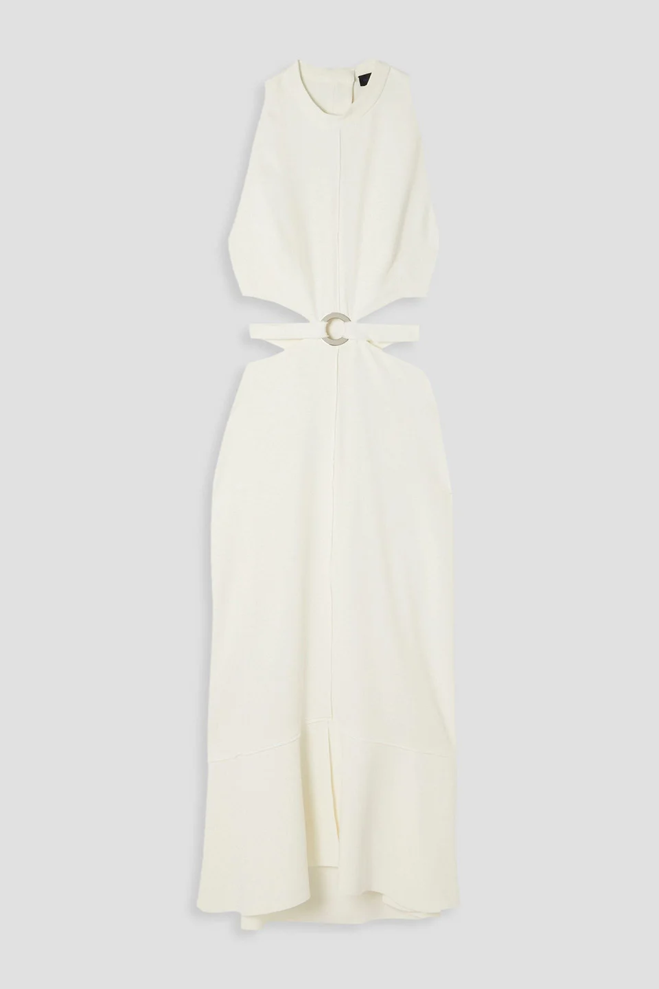 Dress stretch-cady ring embellishment cutout snap fastenings at neck concealed hook and zip fastening at back slightly stretchy fabric mid-weight fabric dry clean made in italy 96% Viscose 4% Elastane Product Code 1647597321812831