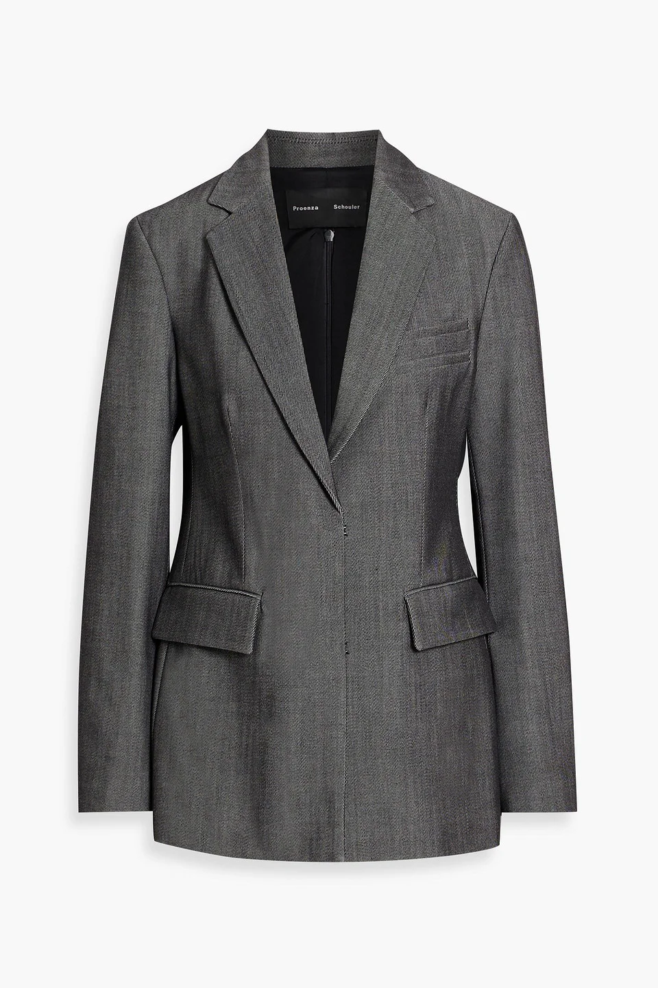 Blazer wool-blend twill zip-detailed slit cuffs breast pocket front flap pockets concealed hook fastenings through front fully lined back vent mid-weight, slightly stretchy fabric dry clean made in italy 76% Virgin Wool 22% Polyamide 2% Elastane Product Code 46376663162882458