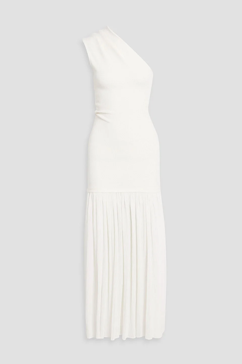 One-shoulder bouclé-knit and plissé-chiffon maxi dress